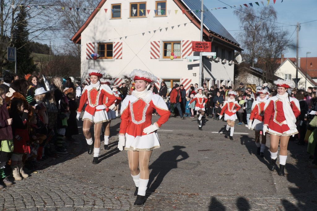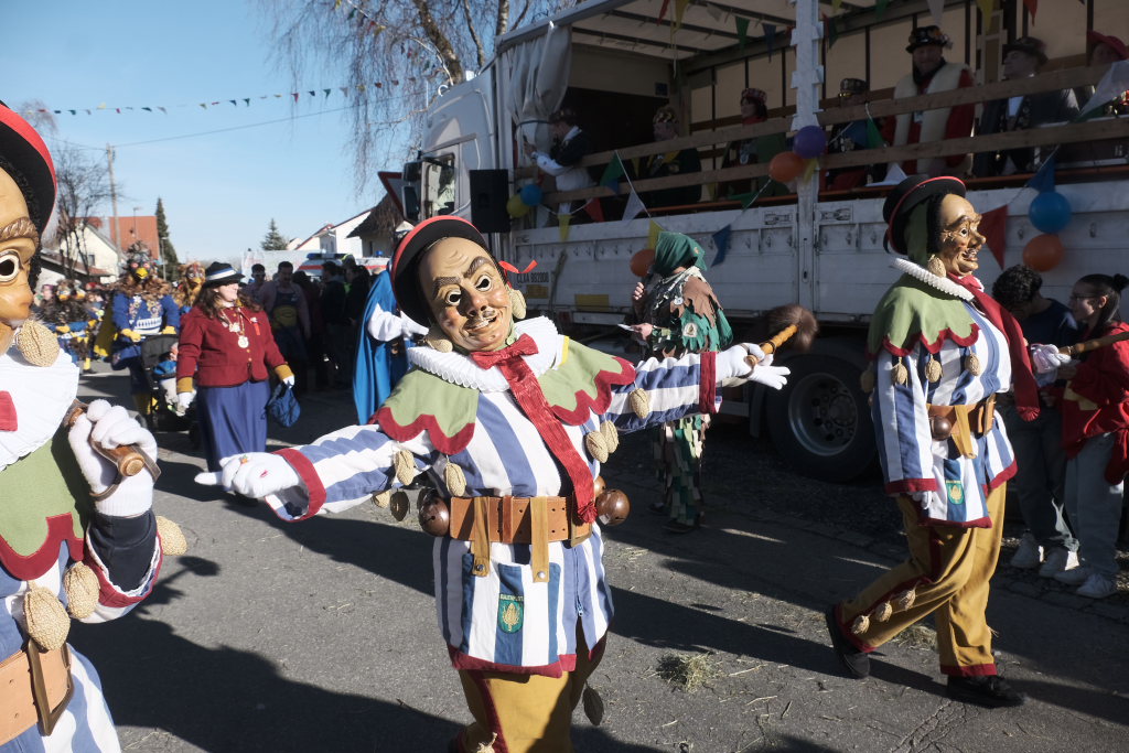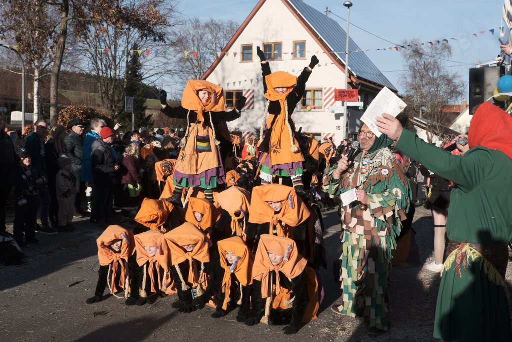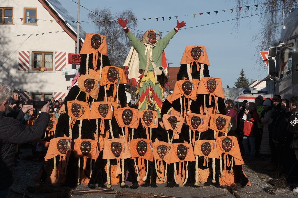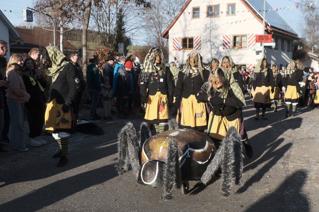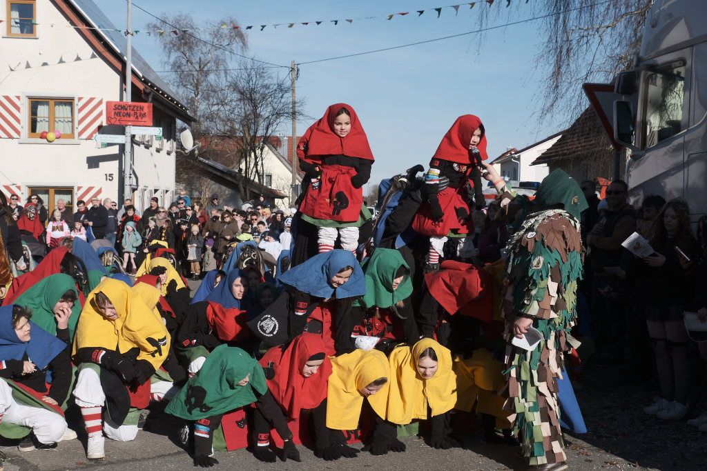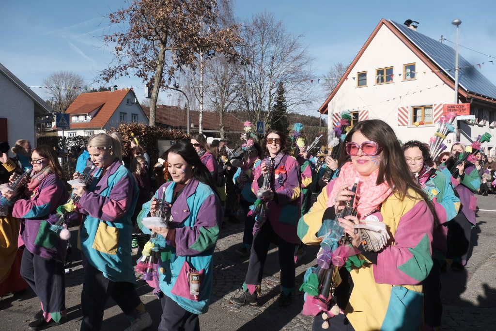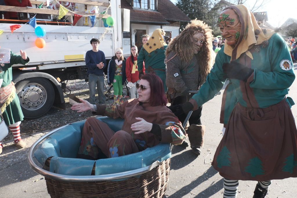Pünktlich um 14.00 Uhr starte der närrische Lindwurm mit der Musikkapelle Haidgau an der Spitze, gefolgt von Narrensamen, Wachtmeister und Fasnetslader der gastgebenden Chadalohs. Nach dem musikalischen Intermezzo der Vogter Schalmeien folgten mit den Vogter Heufressern, der Baienfurter Henkerhaus Zunft und den Doraweibla aus Dornstadt die Patenzünfte der Chadalohs. Natürlich nicht fehlen durfte die Haidgauer „Konkurrenz“, die Haisterkircher „Z …-Sippe, die in der vergangenen Saison im Zuge des Political-Correctness-Wahns einen Teil ihres Namens eingebüßt hat.