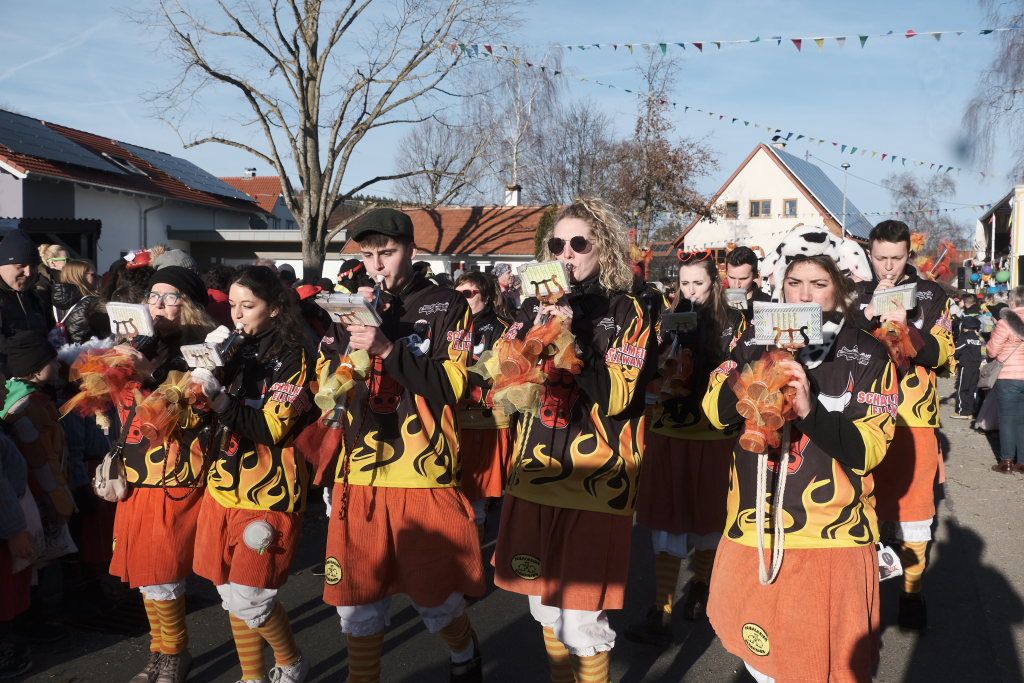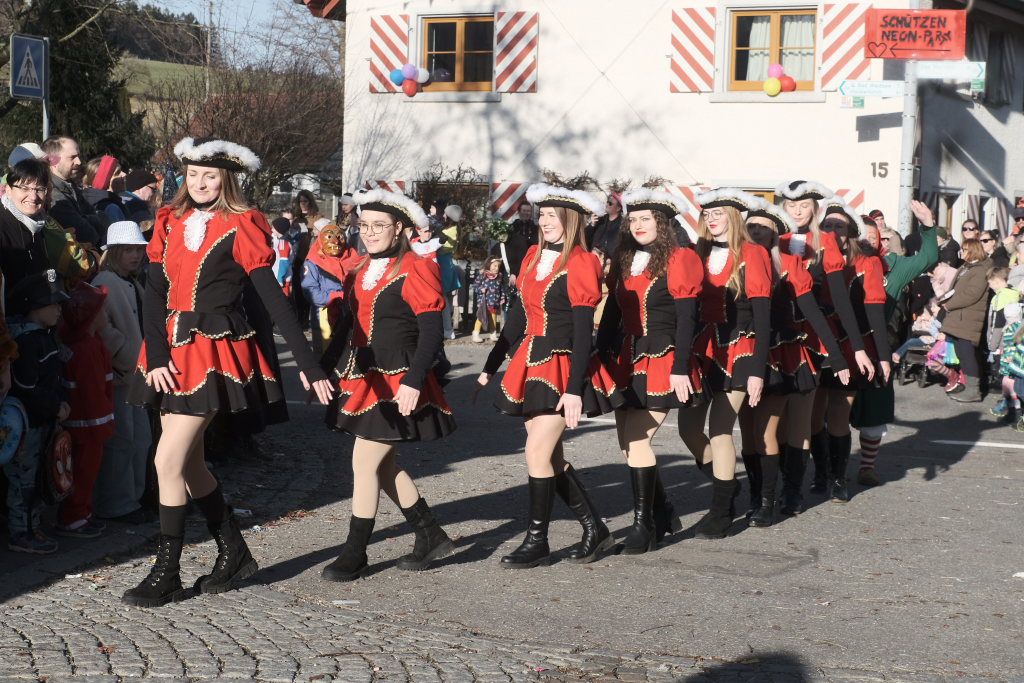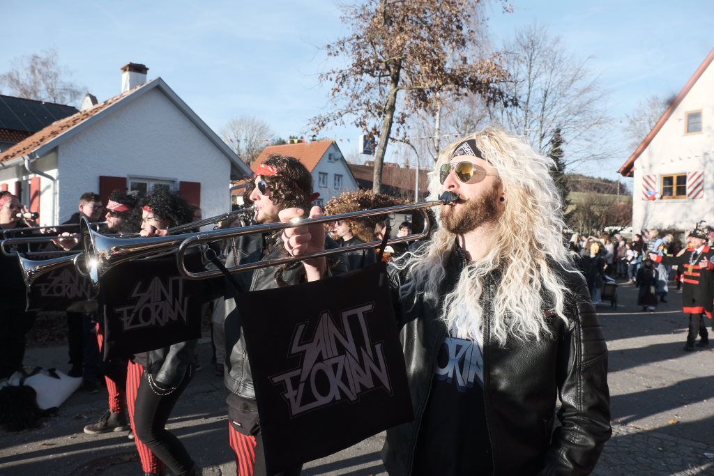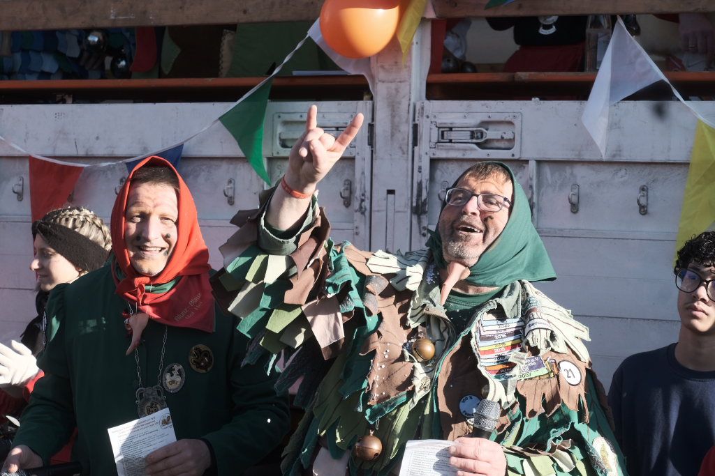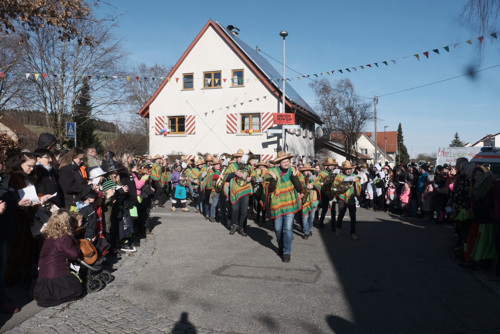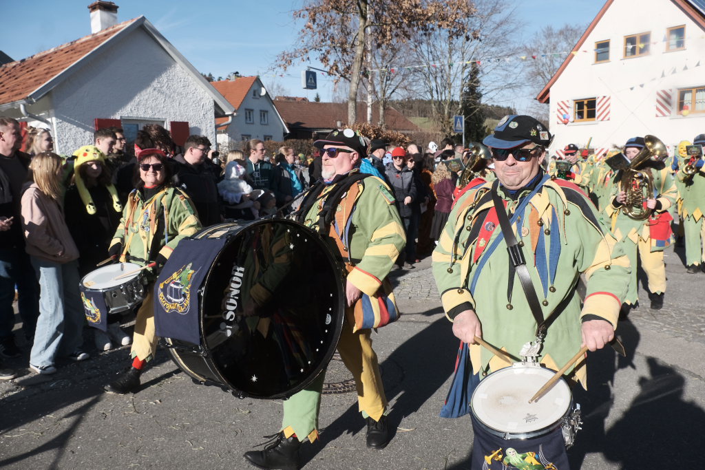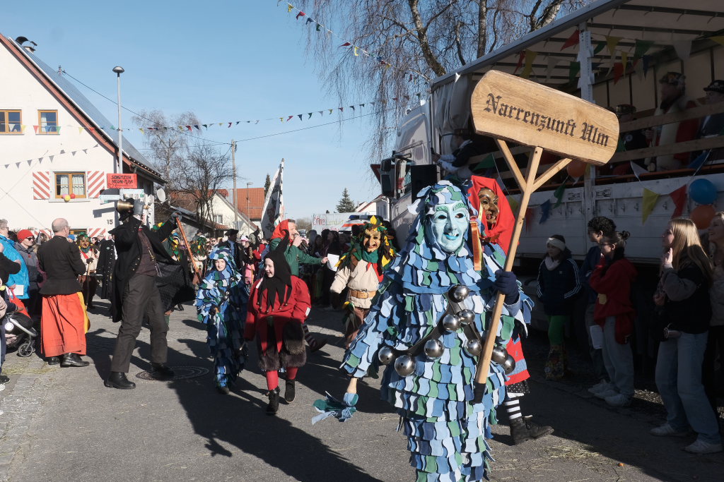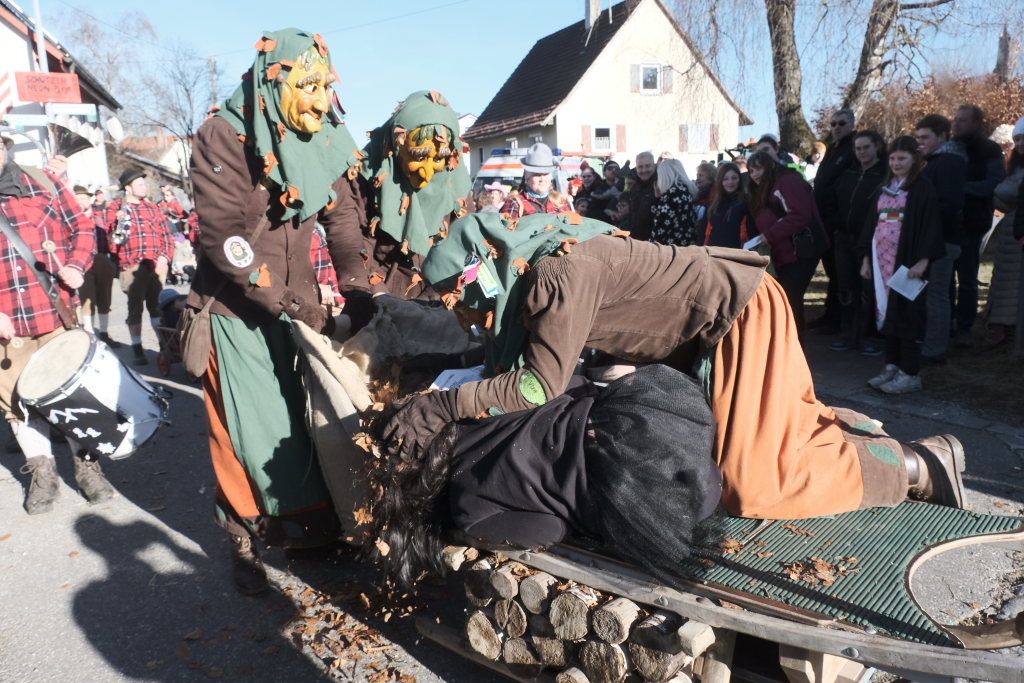 Pünktlich um 14.00 Uhr starte der närrische Lindwurm mit der Musikkapelle Haidgau an der Spitze, gefolgt von Narrensamen, Wachtmeister und Fasnetslader der gastgebenden Chadalohs. Nach dem musikalischen Intermezzo der Vogter Schalmeien folgten mit den Vogter Heufressern, der Baienfurter Henkerhaus Zunft und den Doraweibla aus Dornstadt die Patenzünfte der Chadalohs. Natürlich nicht fehlen durfte die Haidgauer „Konkurrenz“, die Haisterkircher „Z …-Sippe, die in der vergangenen Saison im Zuge des Political-Correctness-Wahns einen Teil ihres Namens eingebüßt hat.