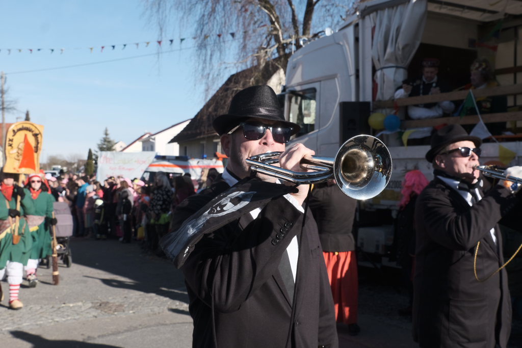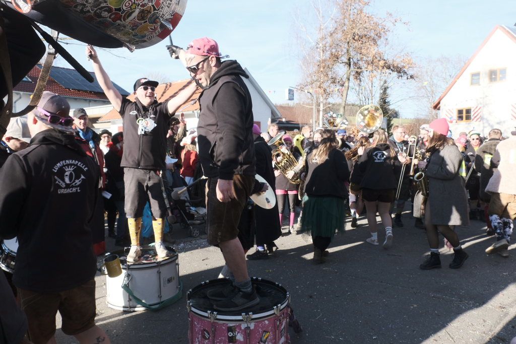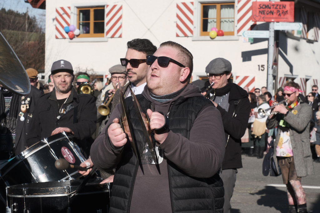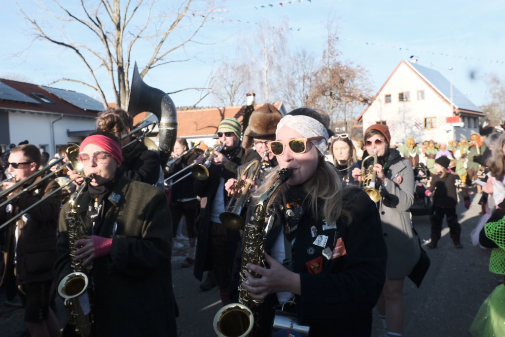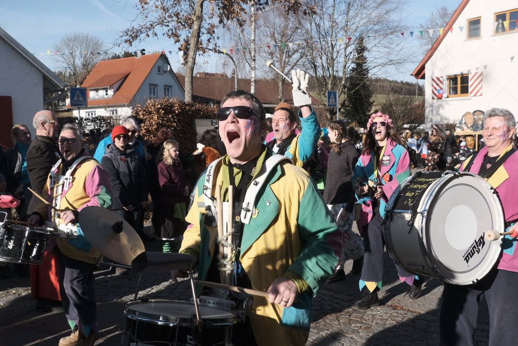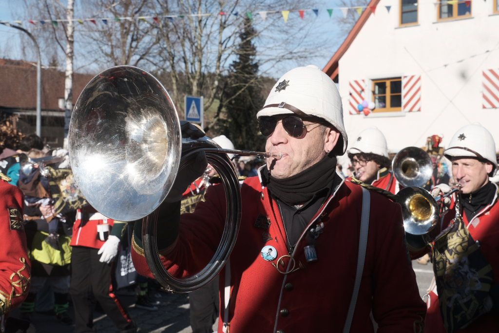 Was wäre Fasnet und ein Umzug ohne Musik: Die Hoigamer Stroaßa Hup´r, die Riedspatza Bad Wurzach und der Fanfarenzug aus der Riedstadt vertraten neben der Musikkapelle Haidgau die Farben Bad Wurzachs. Aus der näheren Umgebung waren mit dem Fanfarenzug Graf Humbrecht aus Eberhardzell, den Schalmeien aus Ellwangen, der Lumpenkapelle Urbach und dem zunfteigenen Fanfarenzug aus Bergatreute einige weitere Gruppen dabei. Dazu gesellten sich noch viele weitere Guggamusiken, Lumpenkapellen, Schalmeien und Fanfarenzüge, die nach dem Umzug in der Halle und auf den Straßen noch weiter für Stimmung sorgten.