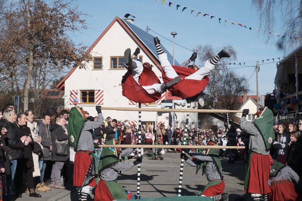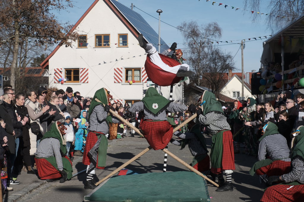 Stammgäste beim Haidgauer Sprung sind etwa die Narrenzunft Laudonia Lauingen, die närrische Heimat von Co-Ansager Alex Wild, die Narrenzunft Ulm oder die Oberkochener Schlagga-Wäscher, die jedes Jahr die längsten Anfahrtswege auf sich nehmen, um in Haidgau „vom Glück geküsst zu werden“. Ebenfalls immer dabei: Die Narrenzunft Ochsenhausen mit ihrem urigen Roale und dem weiblichen Pendant, dem Rankenweible.