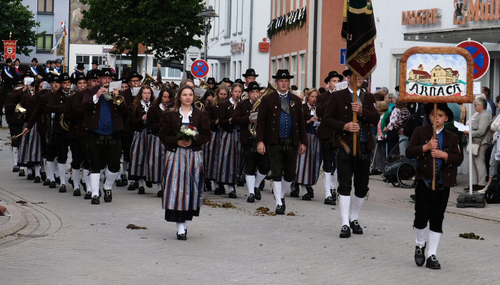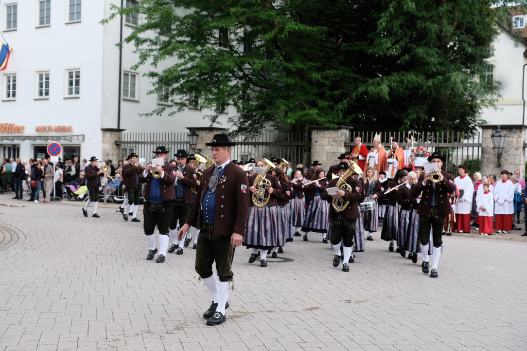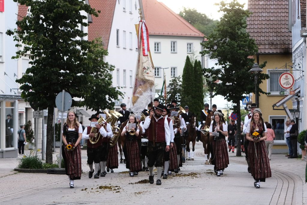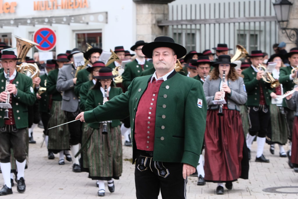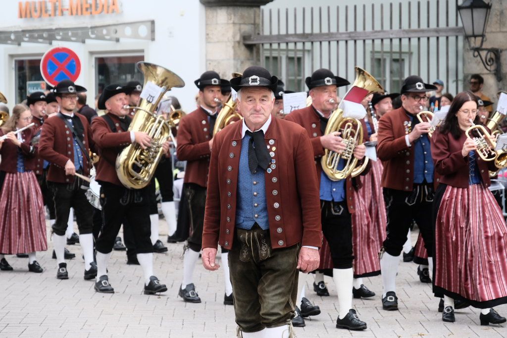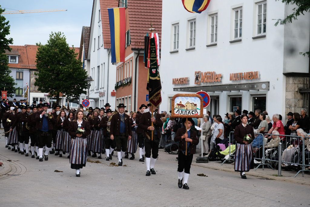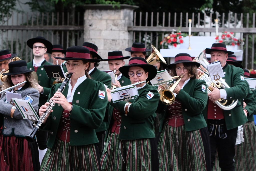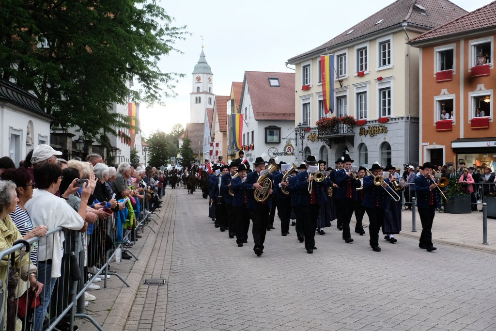 Die Musikkapelle Arnach wurde von Vizedirigent Gerhard Längst geleitet. Insgesamt marschierten 31 Musikkapellen beim Bad Wurzacher Blutritt des Jahres 2024 mit.