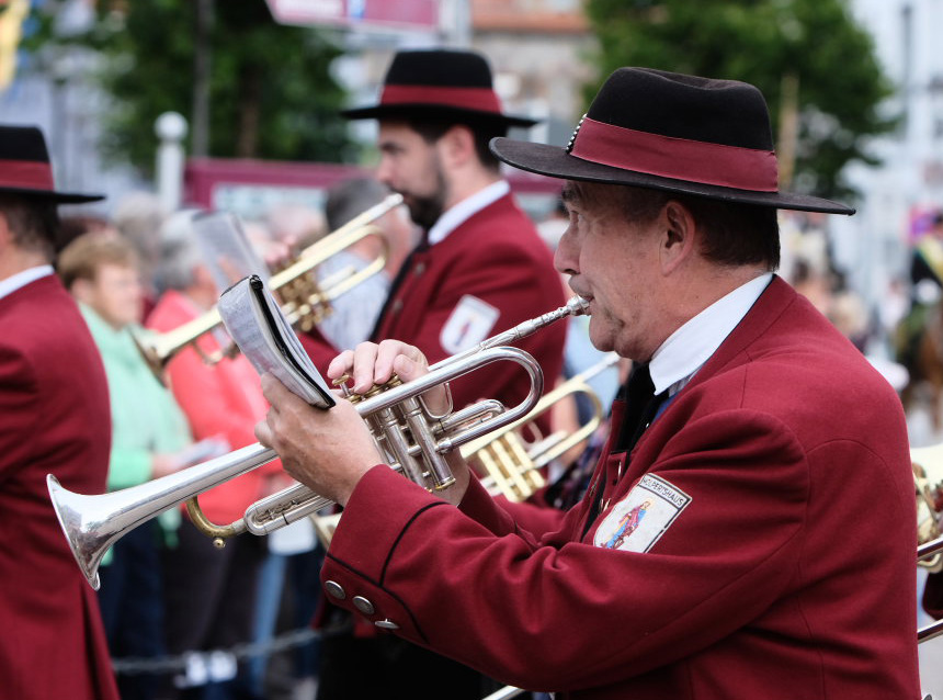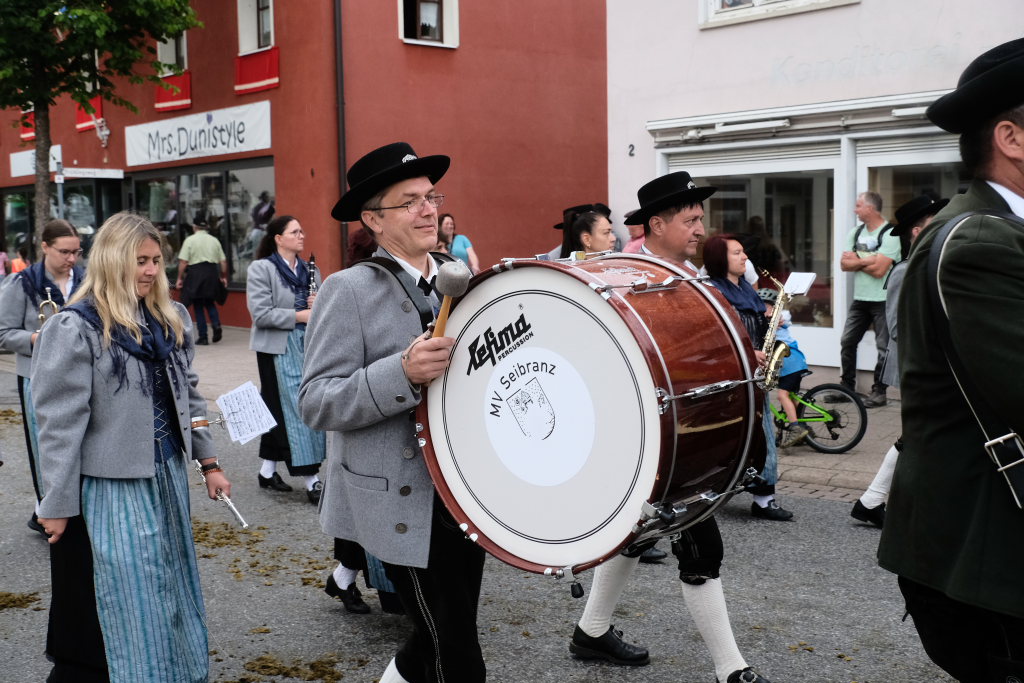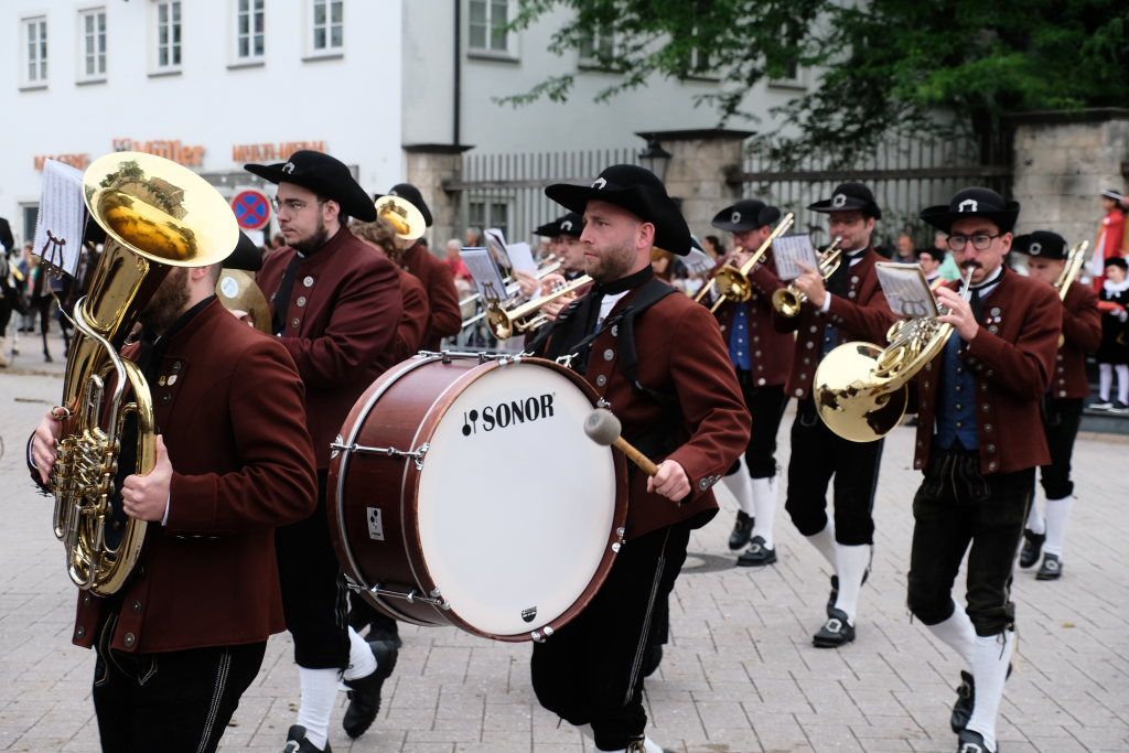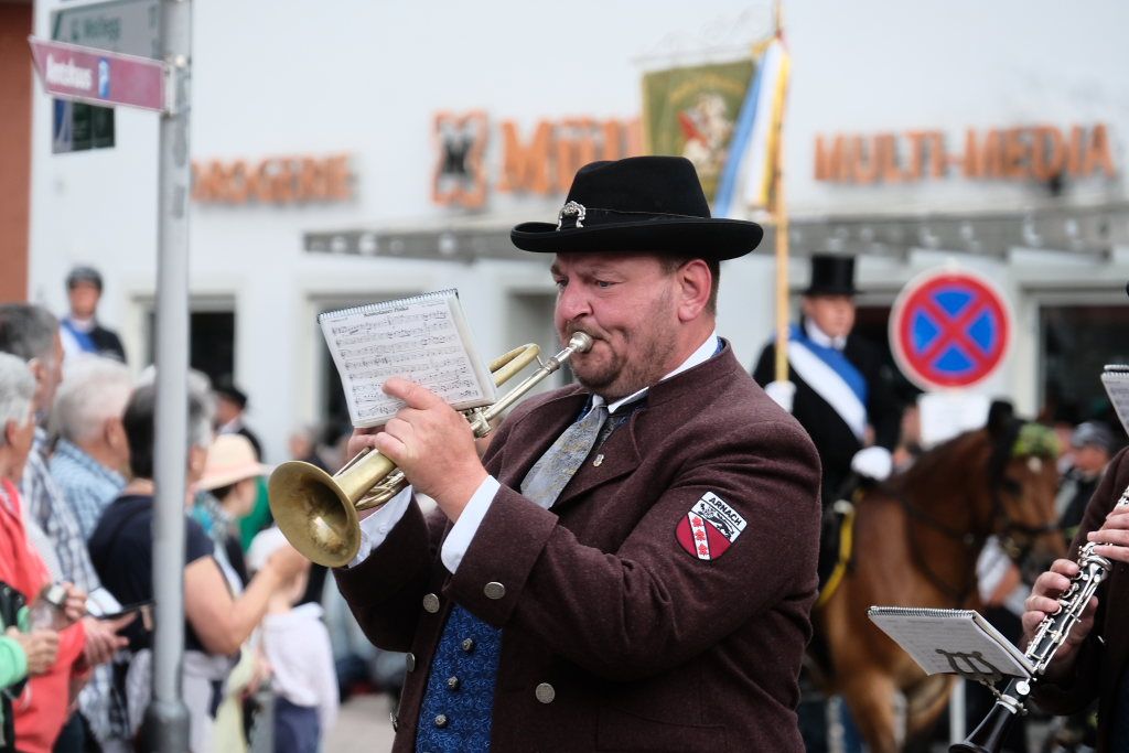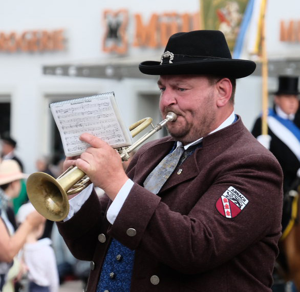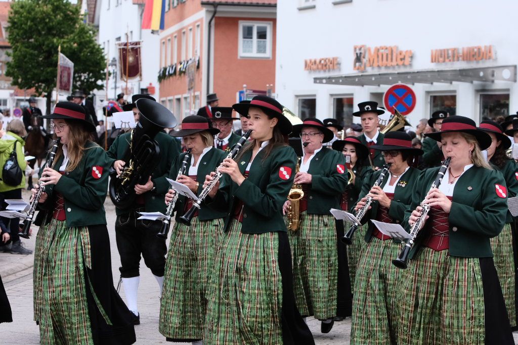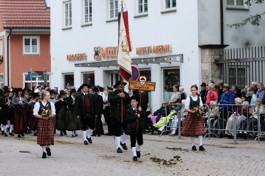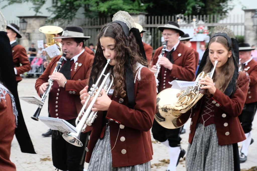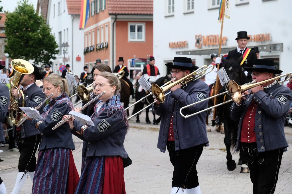Die Musikkapelle Arnach wurde von Vizedirigent Gerhard Längst geleitet. Insgesamt marschierten 31 Musikkapellen beim Bad Wurzacher Blutritt des Jahres 2024 mit.
