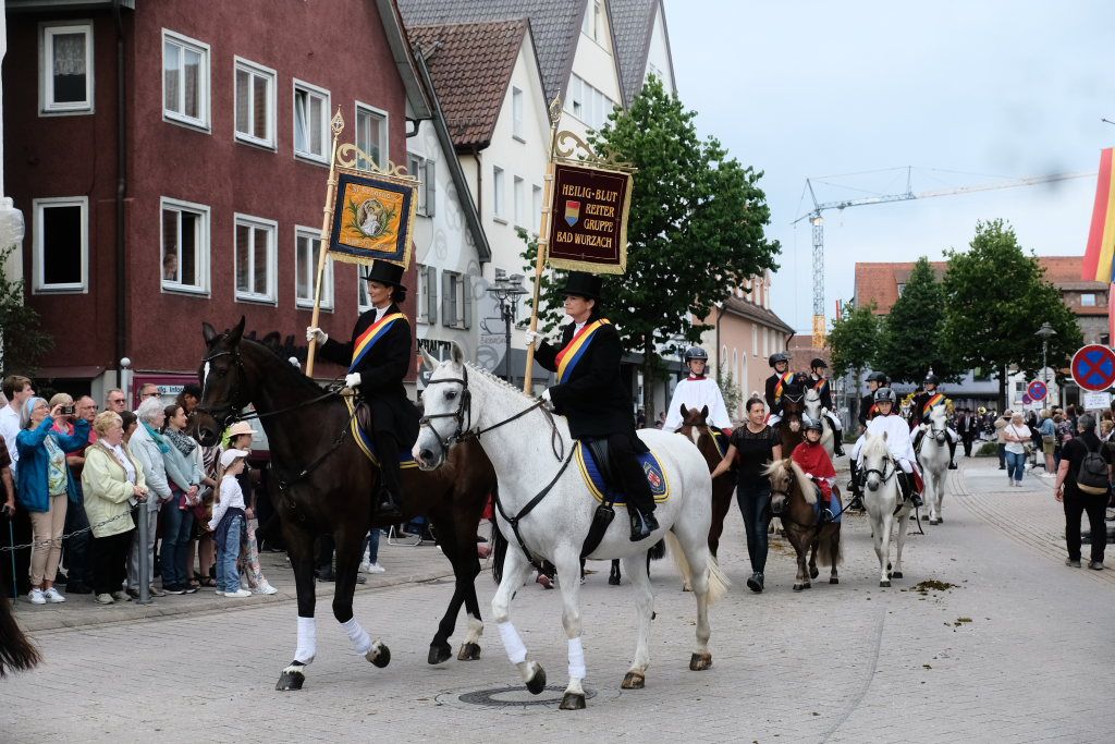 Stadtgardist aus Weingarten. Als Wurzach im Jahre 1928 einen eigenen Blutritt zur Verehrung der auf dem Gottesberg verwahrten Heiligblutreliquie ins Leben rief, war man in Weingarten nicht erfreut. Lange Zeit gab es von dort keine Teilnahmen am Wurzacher Ritt. Der langjährige Bad Wurzacher Gruppenführer Karl Ehrmann (geb. 1939) sorgte nach dem Krieg für Entspannung. Heute ist das gegenseitige Besuchen und Unterstützen eine Selbstverständlichkeit.