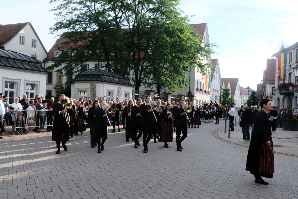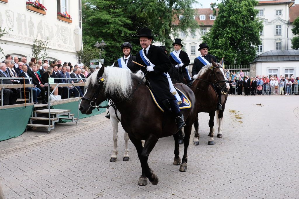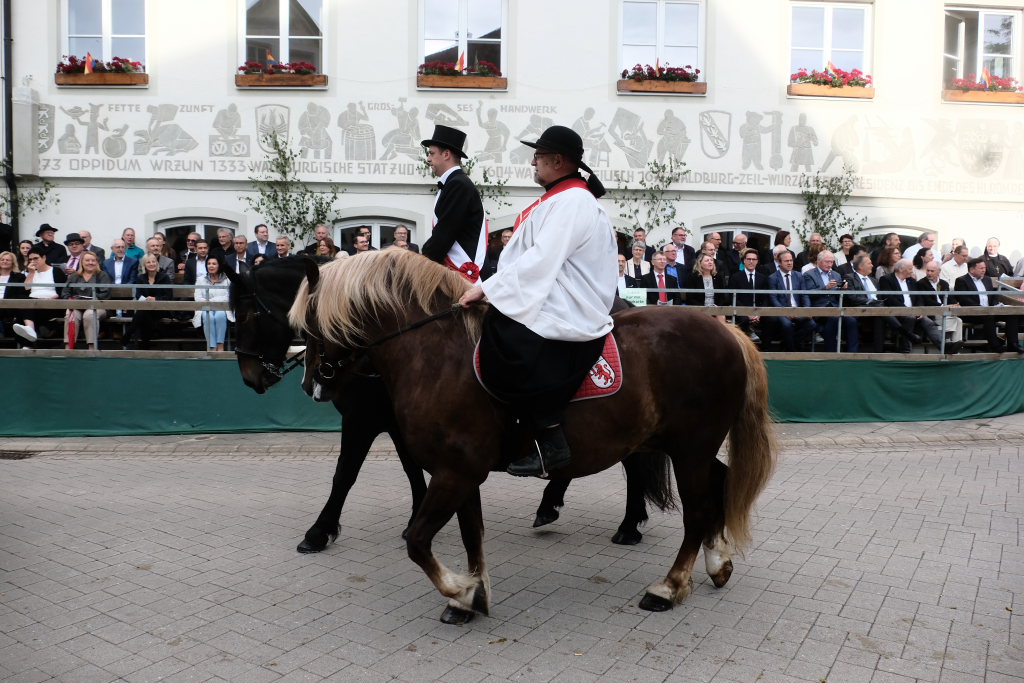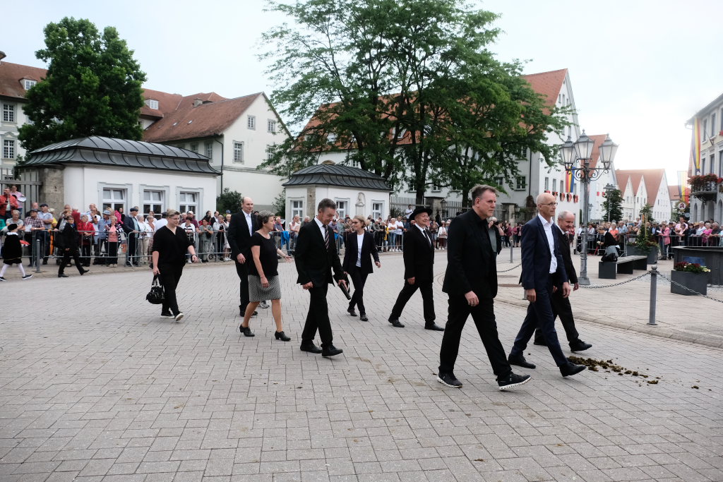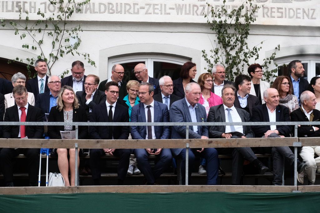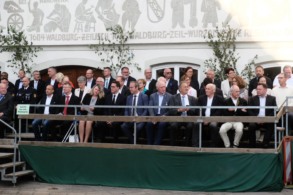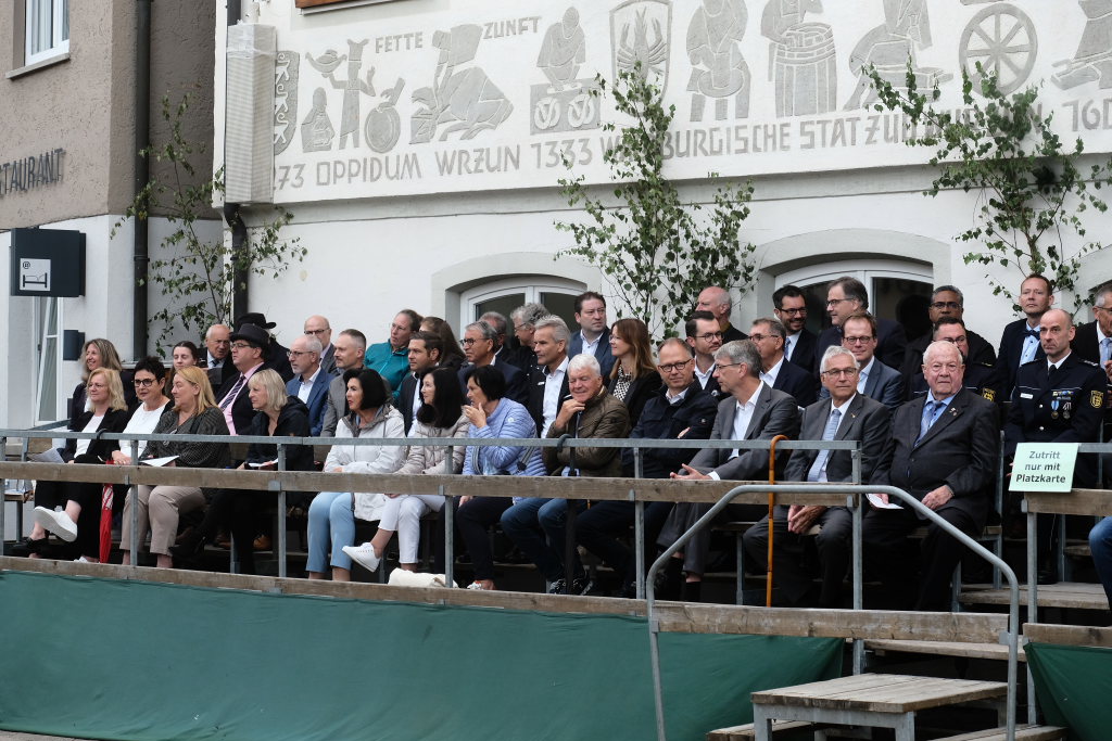 Die Ehrentribüne am Rathaus war heuer unter anderem mit dem baden-württembergischen CDU-Fraktions- und Parteivorsitzenden Manuel Hagel, den Bundestagsabgeordneten  Josef Rief und Martin Gerster, den Landtagsabgeordneten Raimund Haser und August Schuler, den ehemaligen Abgeordneten Waldemar Westermayer, Rudolf Köberle und Helmut Kiefl, zahlreichen Bürgermeistern und Unternehmern aus der Region, der Bad Wurzacher Verwaltungsspitze sowie vielen Gemeinderäten und Ortsvorstehern besetzt.