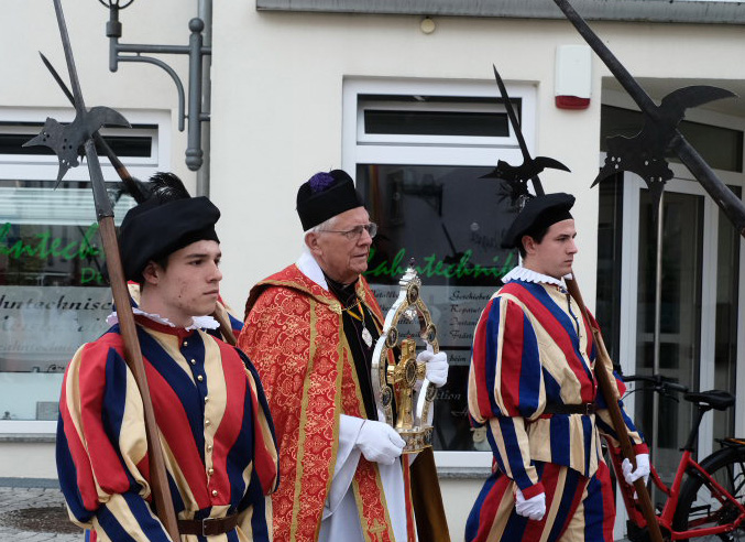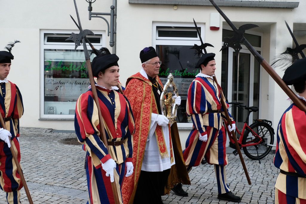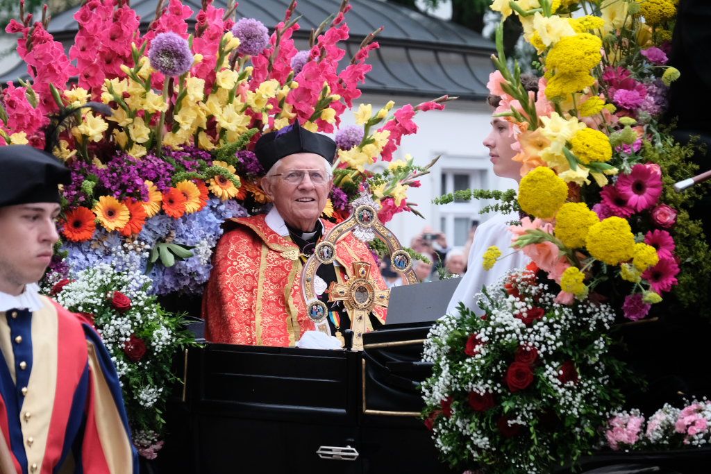 Pfarrer Norbert Wahl, der heuer sein Diamantenes Priesterjubiläum feiern konnte, hatte die Ehre, im Heiligblutwagen zu fahren und als Träger der Reliquie zu dienen.