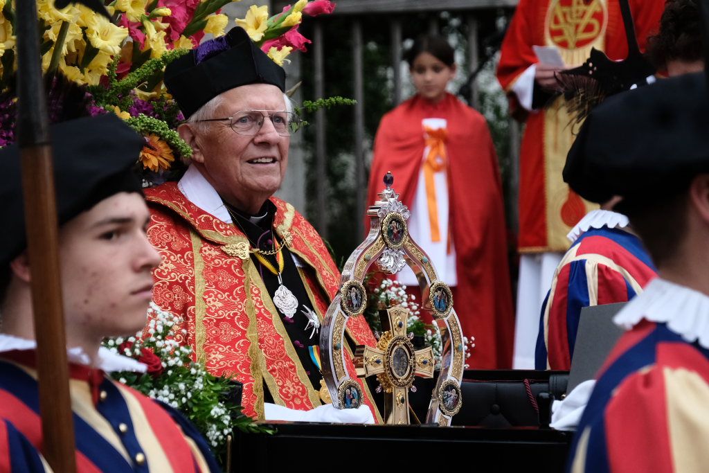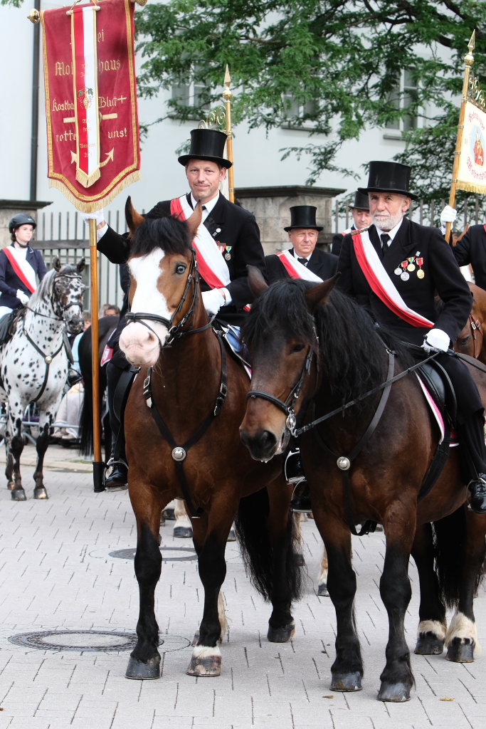 Altgedienter Blutreiter mit Blutfreitagsauszeichnungen an der Ordensbrust.