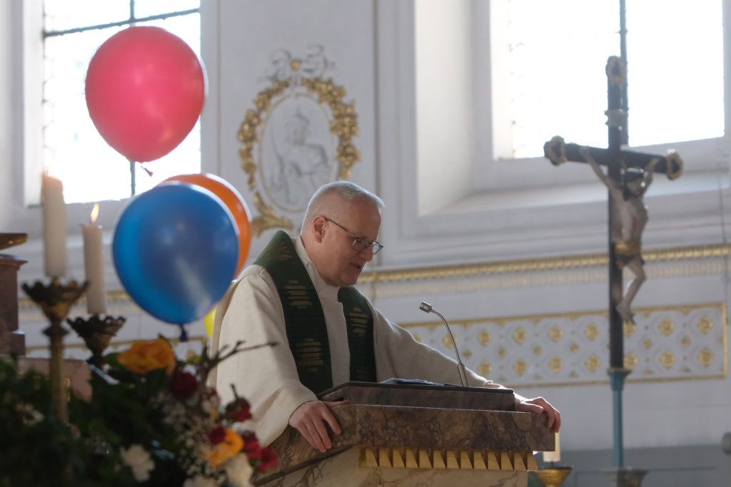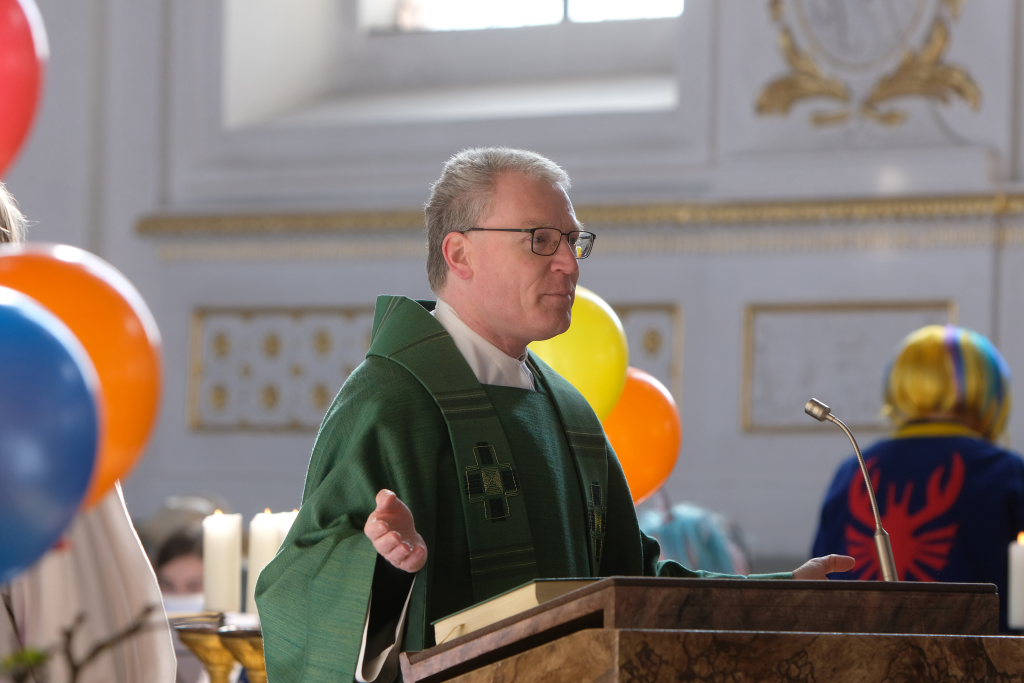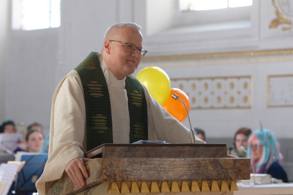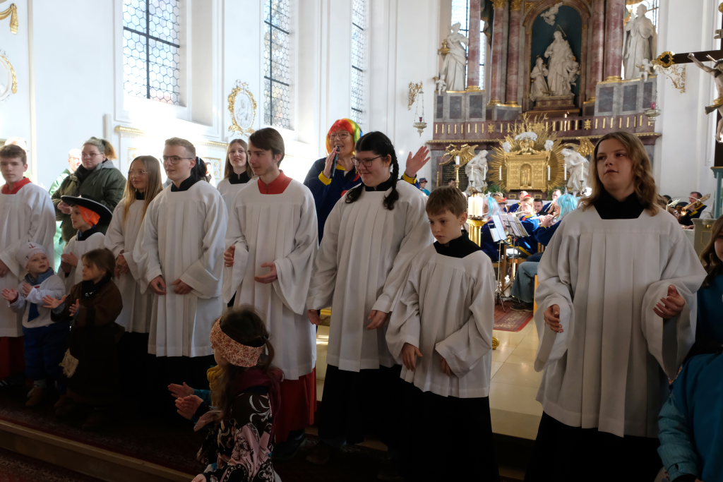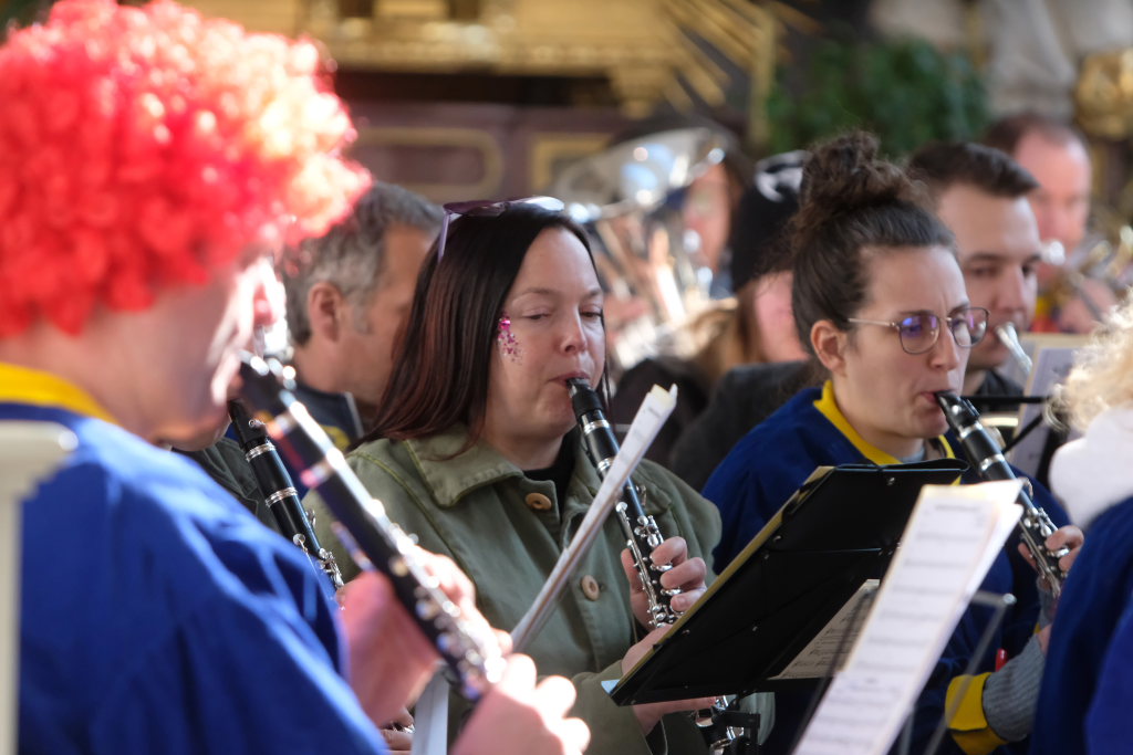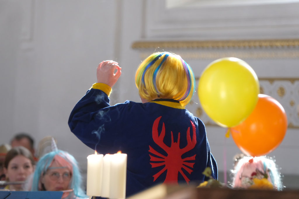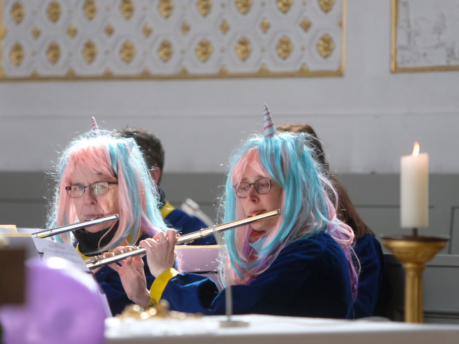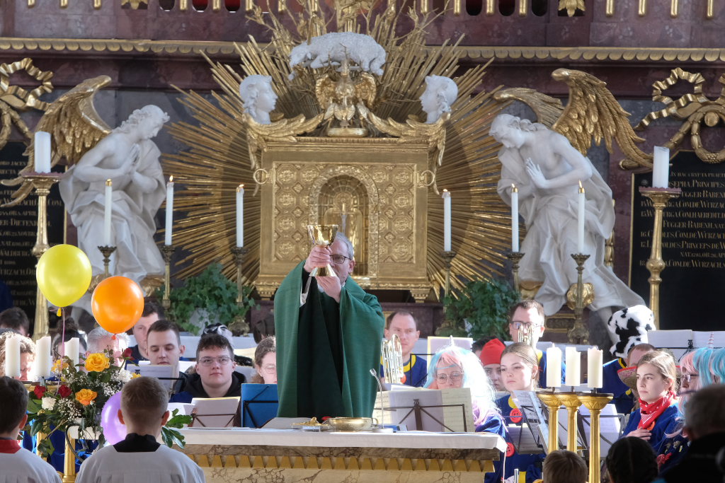 Dass diese Narrenmesse auch zu einem echten Audio-Highlight wurde, dafür sorgte die Stadtkapelle mit ihrer Leiterin Petra Springer. Neben den Liedern aus dem Gotteslob sorgten vor allem ihre Instrumental-Stücke für Kirchenkonzert-Feeling. Als Kommunionbegleitung spielte die Stadtkapelle beispielsweise den berühmten „Second Waltz“ von Dimitri Schostakowitsch. Kein Wunder, dass nach dem Schlusssegen durch Pfarrer Patrick Meschenmoser – zurecht – frenetischer Jubel für sie aufbrandete.