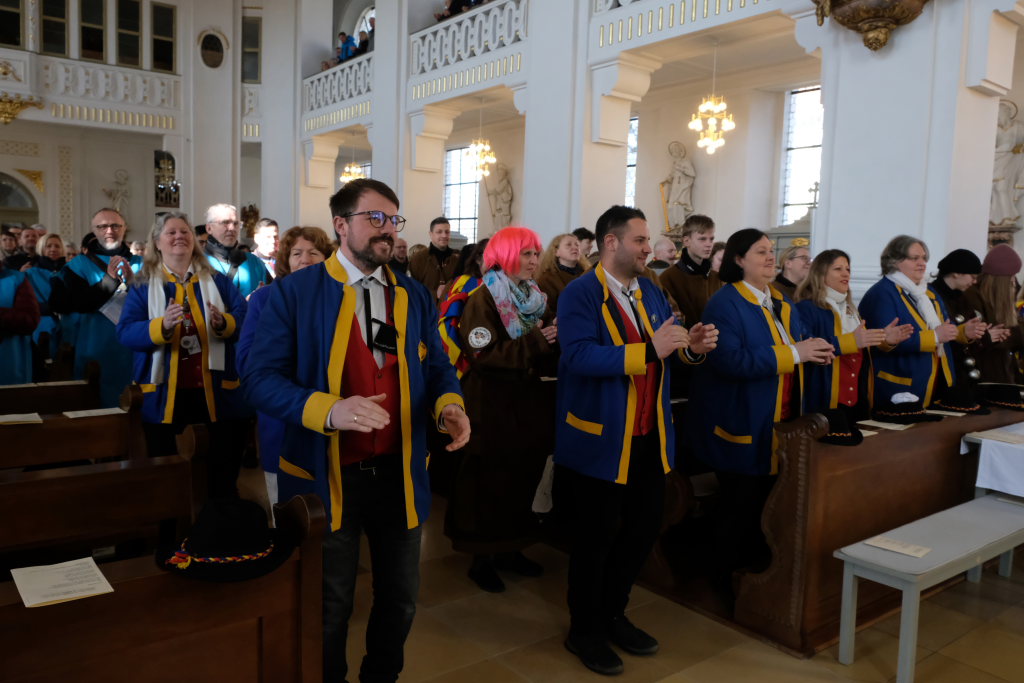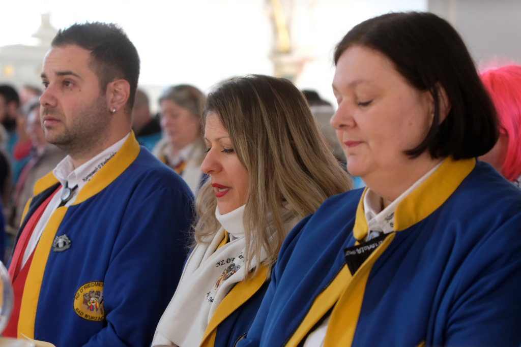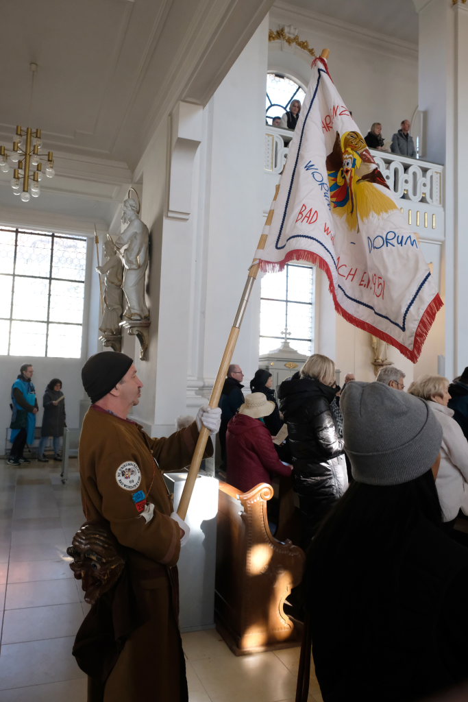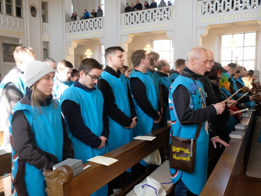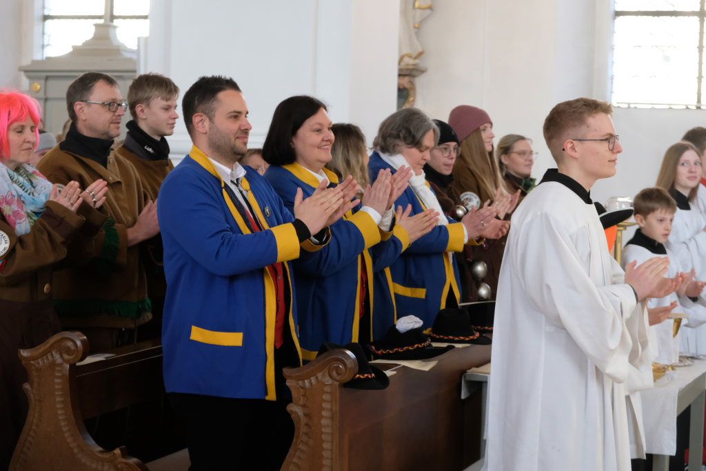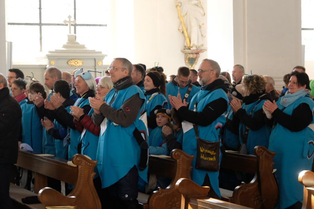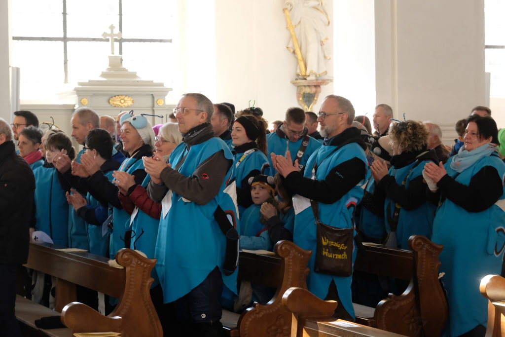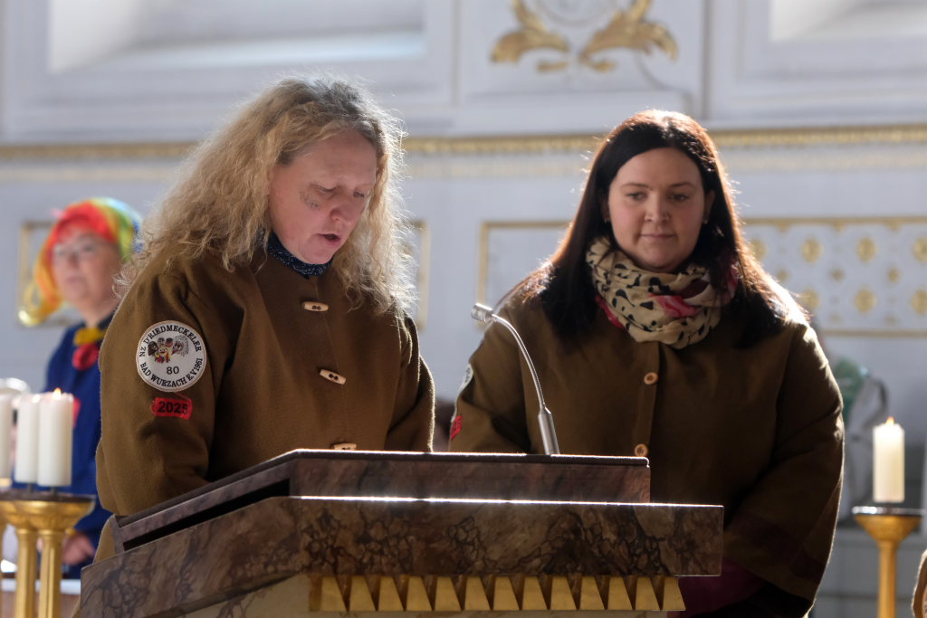 In den Fürbitten, die Hästräger der Narrenzunft lasen, baten sie um eine lebenswerte Gemeinschaft, für die Hästräger und Umzugsbesucher Spaß und Freude und dass niemand zu Schaden kommen möge. Sie erbaten auch für die Politiker in Berlin um eine rasche Regierungsbildung und dass alle, die für Deutschland und die Demokratie Sorge tragen, die richtigen Schritte gehen. Mit in ihre Fürbitten schlossen sie die Menschen in der Ukraine ein, die seit drei Jahren unter Krieg, Gewalt und Terror leiden. Und schließlich beteten sie auch um die Genesung von Papst Franziskus sowie aller körperlich und seelisch Kranken und schlossen die Menschen ein, die in Ländern ohne medizinische Versorgung leben müssen.