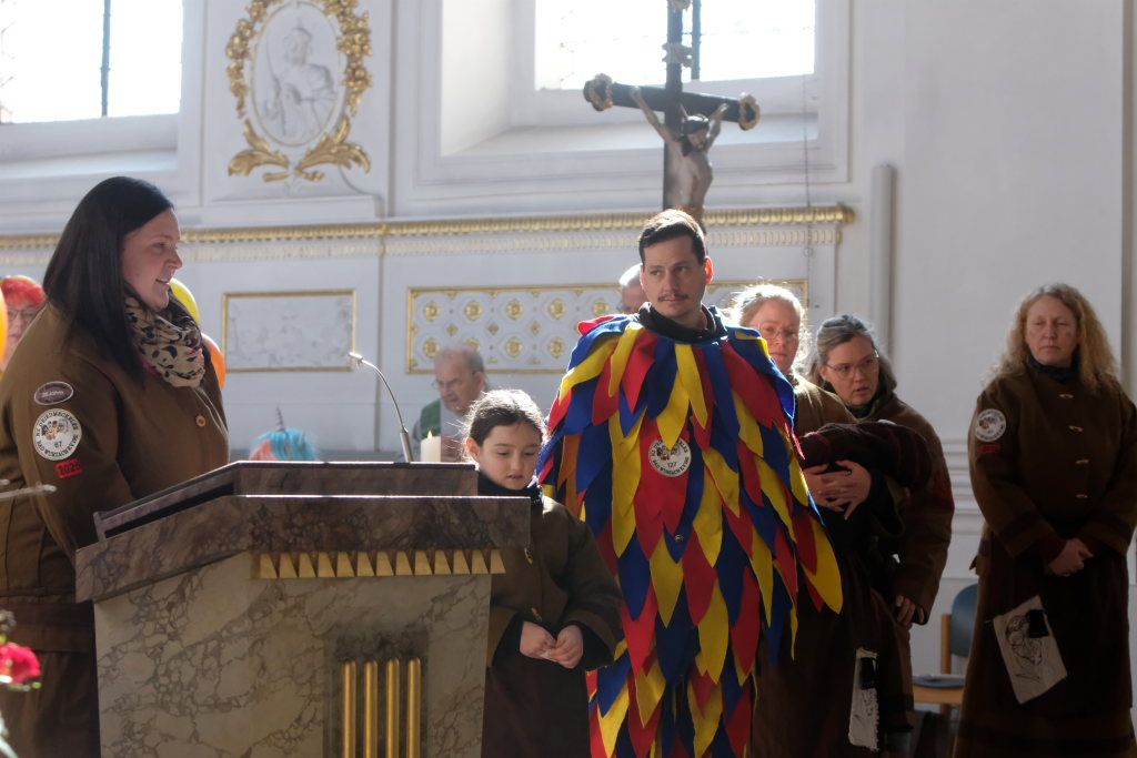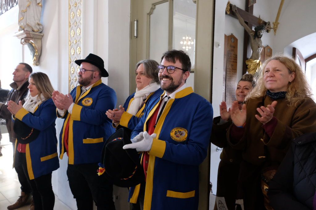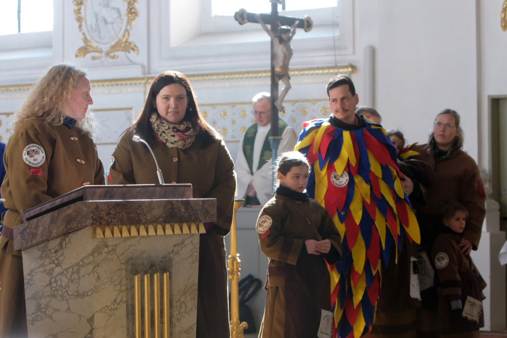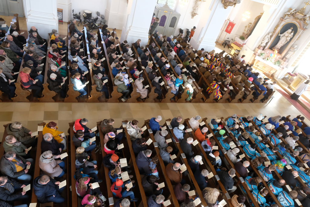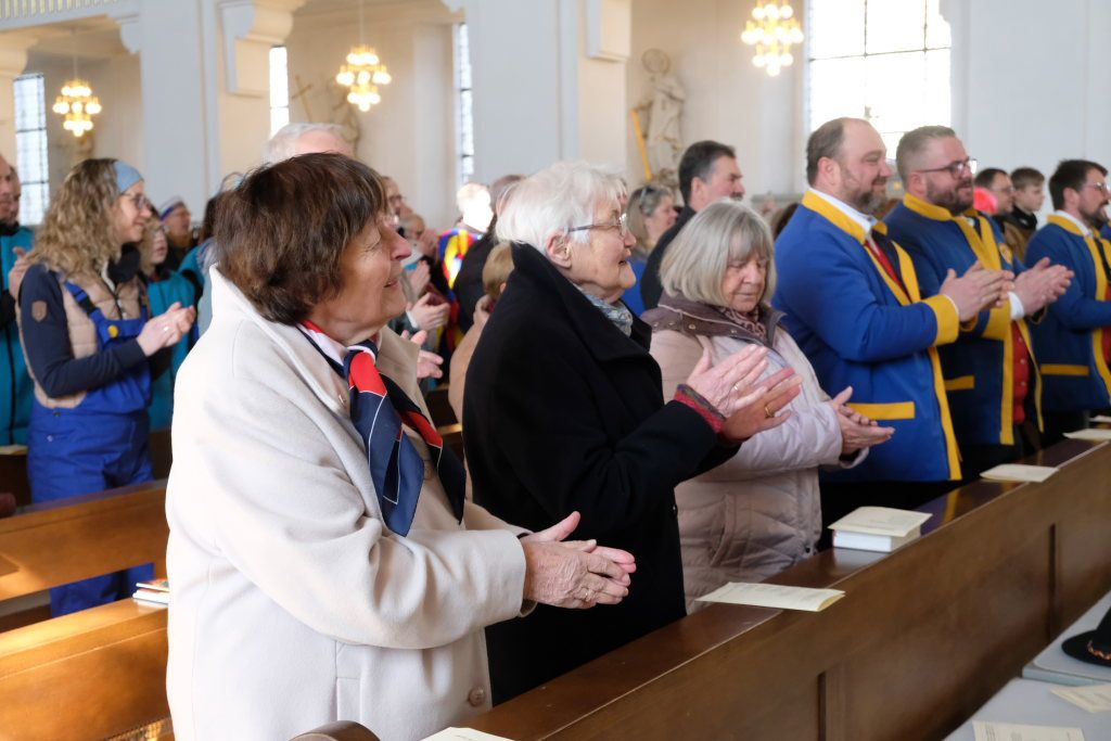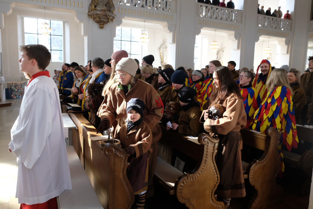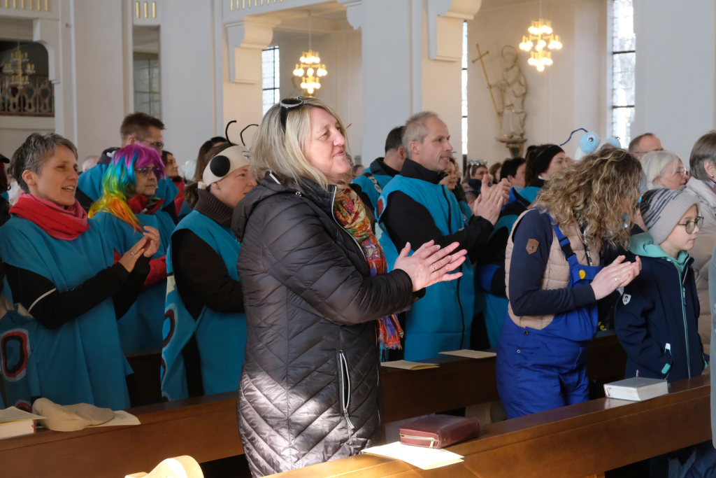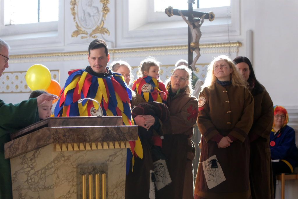 In den Fürbitten, die Hästräger der Narrenzunft lasen, baten sie um eine lebenswerte Gemeinschaft, für die Hästräger und Umzugsbesucher Spaß und Freude und dass niemand zu Schaden kommen möge. Sie erbaten auch für die Politiker in Berlin um eine rasche Regierungsbildung und dass alle, die für Deutschland und die Demokratie Sorge tragen, die richtigen Schritte gehen. Mit in ihre Fürbitten schlossen sie die Menschen in der Ukraine ein, die seit drei Jahren unter Krieg, Gewalt und Terror leiden. Und schließlich beteten sie auch um die Genesung von Papst Franziskus sowie aller körperlich und seelisch Kranken und schlossen die Menschen ein, die in Ländern ohne medizinische Versorgung leben müssen.