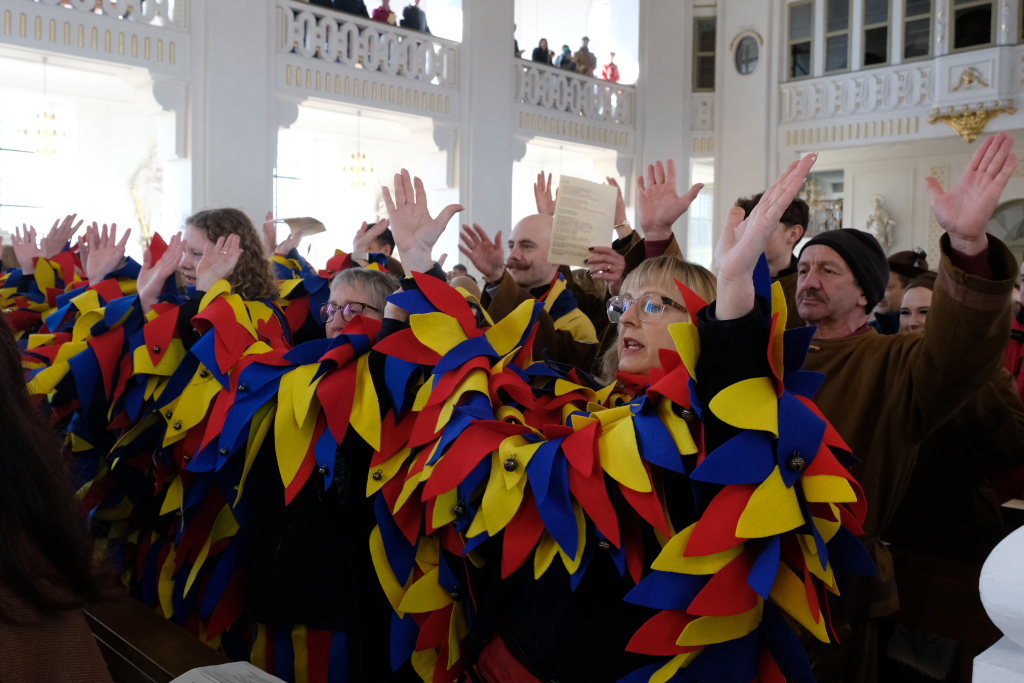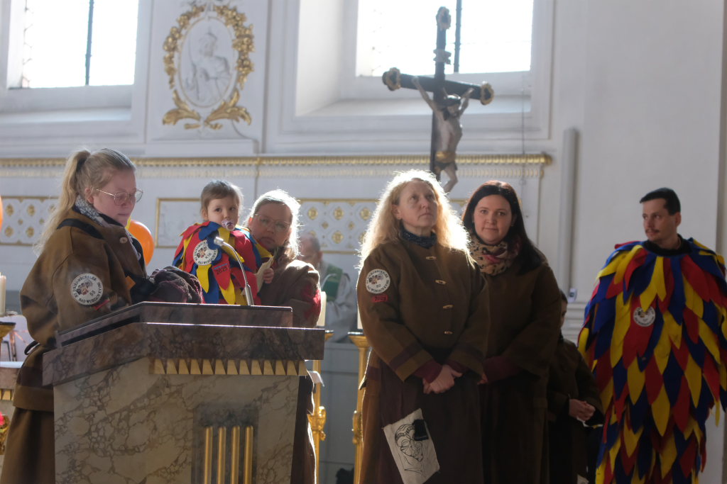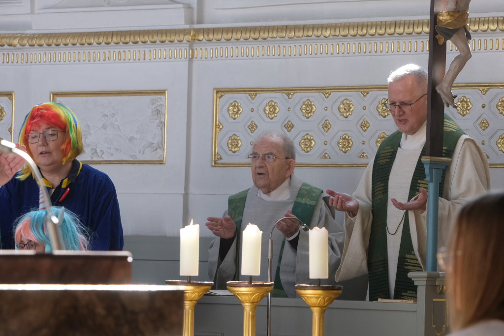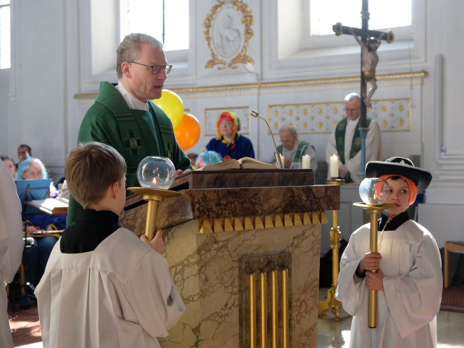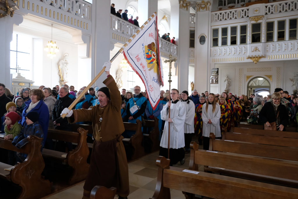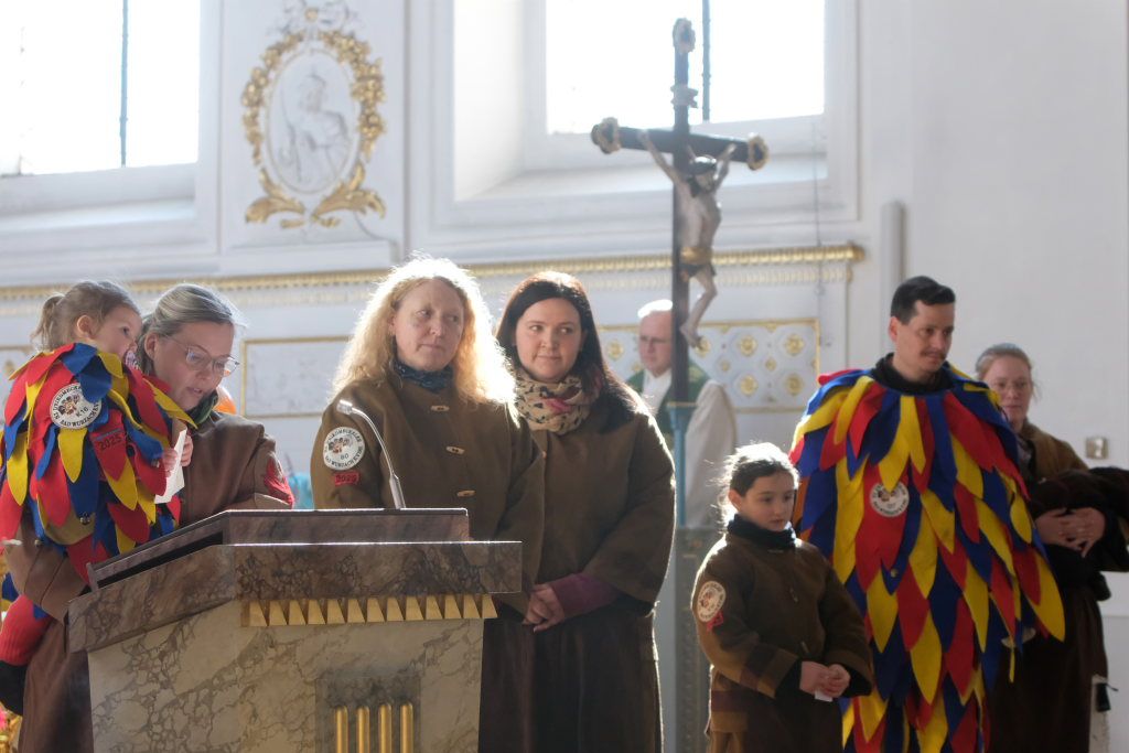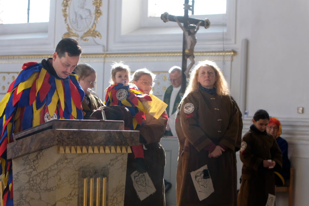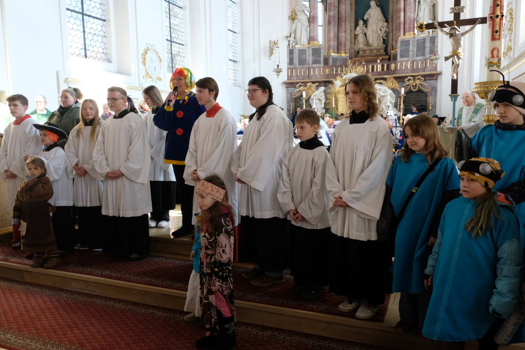 In den Fürbitten, die Hästräger der Narrenzunft lasen, baten sie um eine lebenswerte Gemeinschaft, für die Hästräger und Umzugsbesucher Spaß und Freude und dass niemand zu Schaden kommen möge. Sie erbaten auch für die Politiker in Berlin um eine rasche Regierungsbildung und dass alle, die für Deutschland und die Demokratie Sorge tragen, die richtigen Schritte gehen. Mit in ihre Fürbitten schlossen sie die Menschen in der Ukraine ein, die seit drei Jahren unter Krieg, Gewalt und Terror leiden. Und schließlich beteten sie auch um die Genesung von Papst Franziskus sowie aller körperlich und seelisch Kranken und schlossen die Menschen ein, die in Ländern ohne medizinische Versorgung leben müssen.