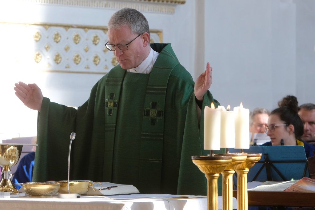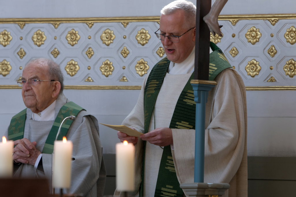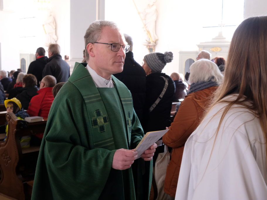 „Der gute Mensch bringt aus dem guten Schatz seines Herzens was uns letztlich glücklich machen kann“, sagte Pfarrer Stefan Maier am Beginn seiner natürlich in Reimform gehaltenen Predigt. „Ich meine, Jesus sieht das wirklich richtig, er sagt: das ist vor allem andern wichtig: Im Herzen gut und richtig wählen, dann wird dadurch (!) die Liebe zählen. Das sei halt wie bei einem Baum: Ob dieser „gut“ ist, erkenne man erst, wenn er Früchte trägt, bei einem schlechten gebe es keine Früchte. „Von Disteln pflückt man keine Feigen, Dornen stets ohne Trauben bleiben.“ Jeder solle schauen, im Herzen rein zu sein, denn „Man sieht nur mit dem Herzen gut!“ Bezugnehmend auf die Lesung, sagte er: „Wer stets bei andern Splitter findt, der ist im eigenen Herzen blind. Der will als Blinder Blinde führen und wird auf diese Weis´ riskieren, den Weg zum Leben zu verfehlen.“ Jedem sei klar, dass Jesus damit recht habe, aber es sei unbequem, dazu zu stehen. Dazu brauche es den schonungslosen Blick auf sich selbst, Ehrlichkeit und Selbstkritik. Davor drückten sich die meisten und seien dann auch nicht besser als jeder x-Beliebige. Wenn man jedoch seine eigenen Fehler und Schwächen erkenne, sich seiner Schuld bewusst werde, dann öffneten sich die Augen. Jesus sage, nicht die Gesunden brauchten den Arzt, sondern die Kranken und im Falle des Splitters im Auge des Anderen sei Jesus der Augenarzt, der Arzt der uns behandeln könne, „weil er uns heilen kann und retten, weil er sprengen kann die Ketten von Blindheit, Stolz und Eitelkeit.“