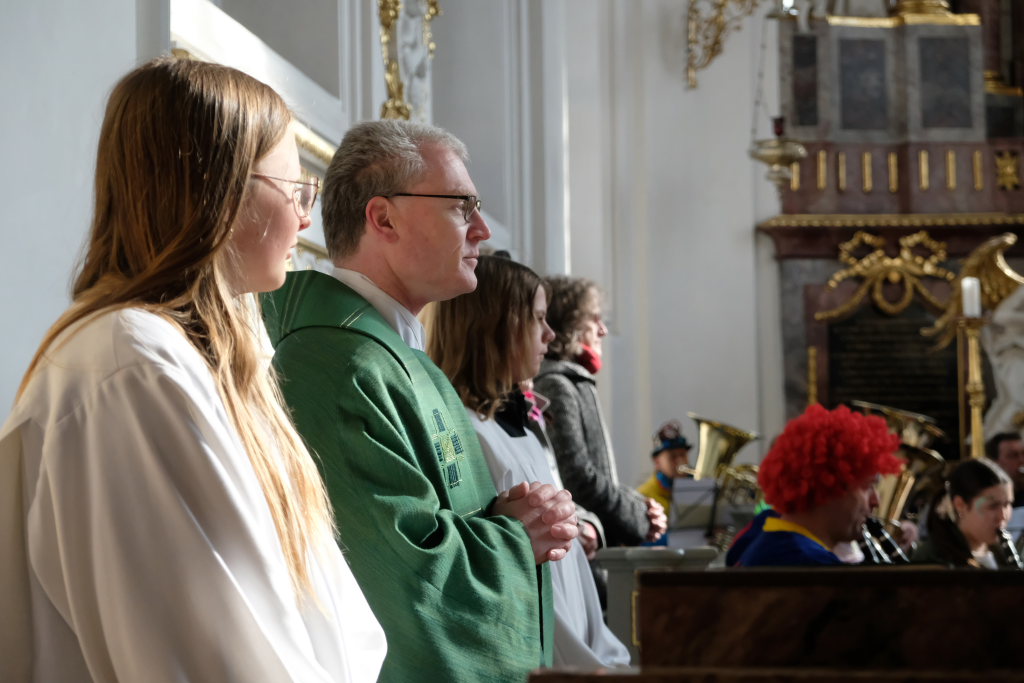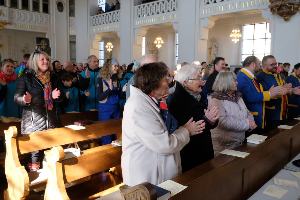 „Am Höhepunkt der Fasnetszeit, seid ihr zum Gottesdienst bereit. So zoiget ihr – und des isch wichtig: bei Gott, do bisch du immer richtig.“