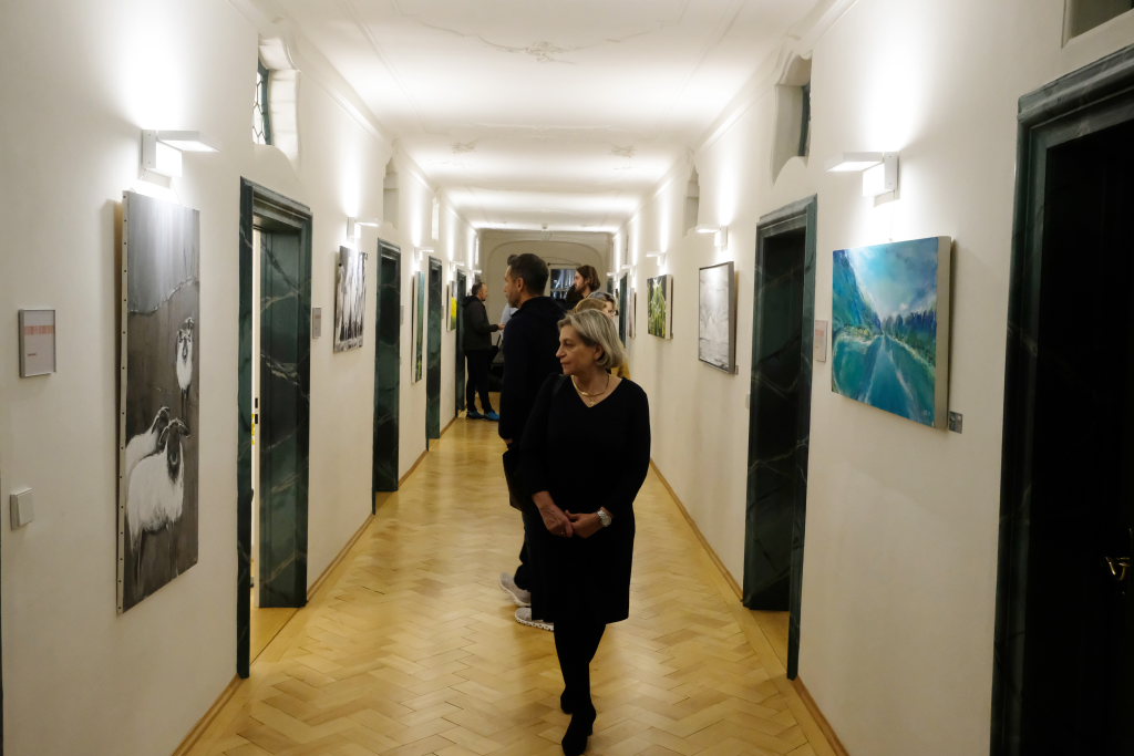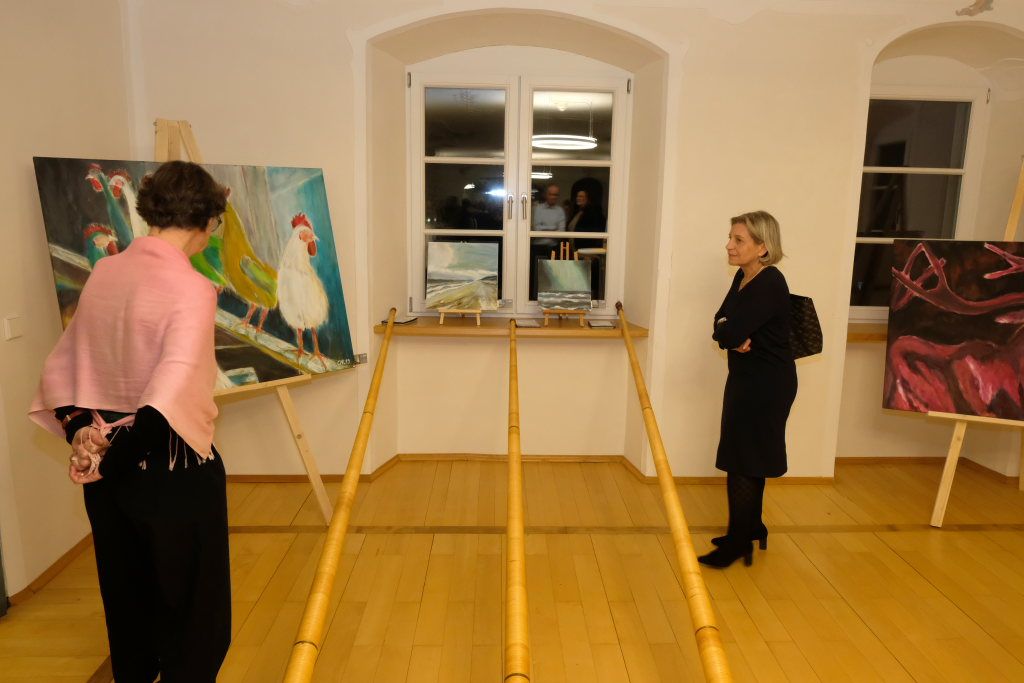 Und noch ein Bonmot hatte der Laudator auf Lager: Weil der Künstler nicht nur grüne Kühe malt, sondern auch bunte Hühner, grüne Hasen, pinke Schafe oder rote Katzen, da hätten sich die Leute im kleinen Frauenzell bei seinen ersten Ausstellungen erst einmal die Augen gerieben. Auf Rad- und Skitouren geht der Künstler seinem Hobby nach: Fotografieren. Aus diesen Bildern schöpft er dann die Inspiration für die entsprechenden Bilder, die auch in der Ausstellung zu sehen sind.
