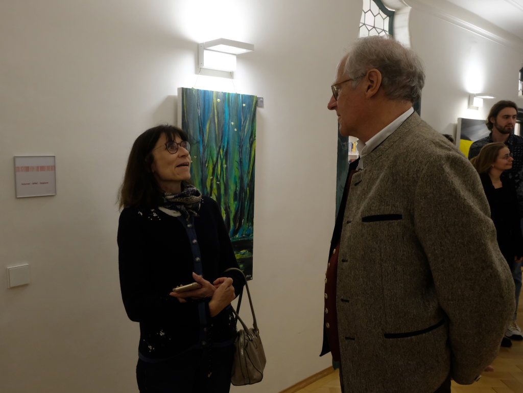 Klaus Schütt als Vertreter der Stadt und der Bürgermeisterin freute sich in seinem Grußwort, dass so viele Gäste der Einladung zu der Vernissage gefolgt waren. Er sah in der Tatsache, dass der Künstler von sich aus auf die Ausstellungsorganisatorinnen Doris Schäfer und Christl Linge zugegangen sei, ein Zeichen der Wertschätzung für die Galerie und ihre Organisatorinnen. Christoph Reich gab dieses Kompliment postwendend zurück: Es sei ihm eine Ehre, in den wunderbaren Räumen des ehemaligen Klosters ausstellen zu dürfen und stellte den beiden Galeristinnen ein hervorragendes Zeugnis aus.