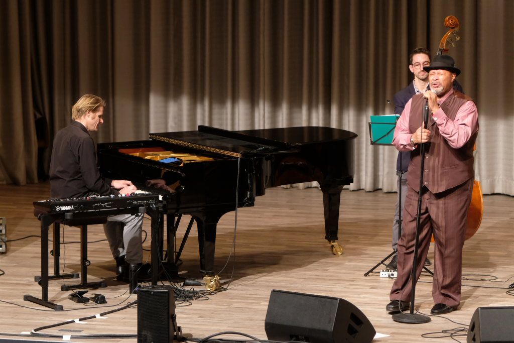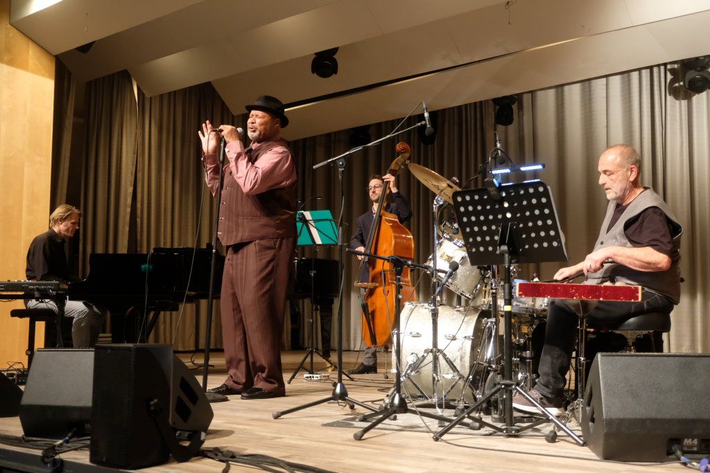 Bad Wurzach – Gemeinsam mit dem Michael Porter Trio tritt Ray Brown Jr. in vielen Städten mit der „Tribute to Ella Fitzgerald-Tour“ auf. Und dank Michael Porter, Schlagzeug-Lehrer an der Bad Wurzacher Jugendmusikschule, gab er nun auch im Kursaal der Kurhaus Kulturschmiede ein Benefiz-Konzert zugunsten von ukrainischen Kindern.