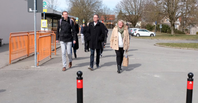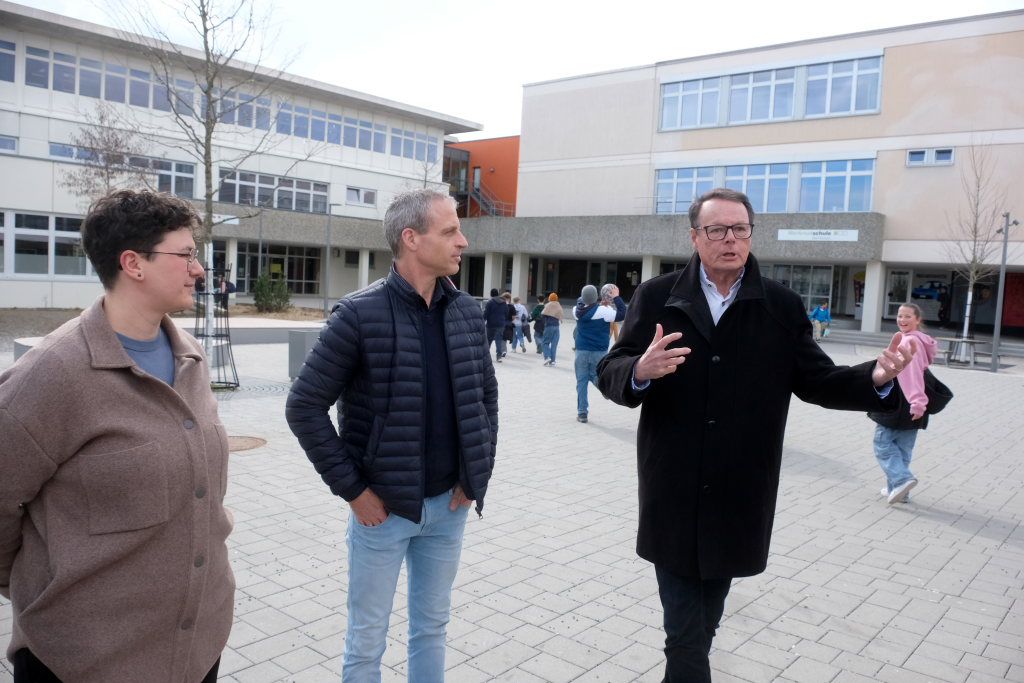 Bürgermeisterin Alexandra Scherer begann ihre Einführungsrede mit einem kleinen Rückblick: Seit seinem letzten Besuch habe sich viel getan. Sie erwähnte, dass der Turmbau nach dem Bürgerentscheid ad acta gelegt sei. Weil der Kurpark nahtlos in das Ried, das ein Naturschutzgebiet ersten Ranges ist, übergeht, aber dieses auch großen Unterhalt erfordere, werde man nach dem neugestalteten Schulhof am Nachmittag auch den Kurpark besichtigen.