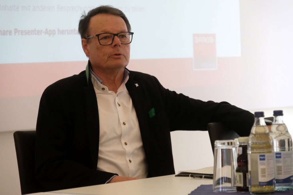 Klaus Tappeser berichtete davon wie die Stadt Meersburg – vom Ortskern etwa so groß wie Bad Wurzach – in Sachen Wärmeplanung vorgehe: Mit Bodenseewasser als Wärmetauscher.