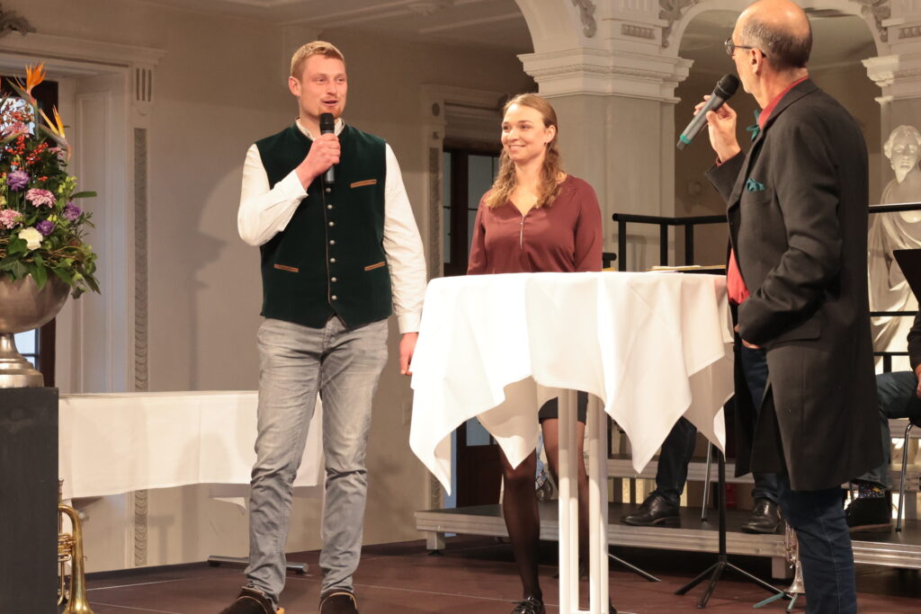 Landwirte brauchen mentale und körperliche Fitness und absolutes Fachwissen, sagte Patricia Seele von der Fachschule für Landwirtschaft in Biberach. Interessant auch, dass Absolventen wie Vinzenz Popp zuerst Zimmermann waren und Larissa Einsiedler gelernte Industriekauffrau. Wo das Herz schlägt, ist halt entscheidend. Viel Ermunterung zum Engagement im Ehrenamt erhielten die Absolventen vom Biberacher Landrat Mario Glaser zugesprochen. Einen guten Wunsch präsentierte Bernhard Bitterwolf musikalisch mit seiner Schalmei und dem Lied „Bleib g`sund!“