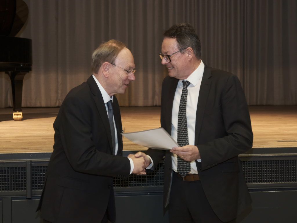 Musikalisch wurde die Feier von Tim Guler am Flügel umrahmt, der den Abend mit dem 1. Satz der Sonate Facile Opus 49 /2 eröffnete. Karl-Josef Fassnacht, der Vorsitzende des Stiftungsrates der Bürgerstiftung Bad Wurzach, übernahm die Begrüßung der Gäste; er wandte sich außer an Regierungspräsident Klaus Tappeser insbesondere an die Vertreter benachbarter Bürgerstiftungen, so aus Baienfurt, Bad Waldsee und Leutkirch, die mit ihrem Erfahrungsschatz den Bad Wurzachern Initiatoren zur Seite gestanden waren.