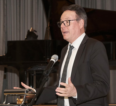 Es war am Vorsitzenden des Stiftungsvorstandes, den Reigen der Reden zu beschließen. Robert Stützle (Bild) berichtete davon, wie die Idee zur Bürgerstiftung im Rahmen einer Weihnachtsfeier 2013 geboren wurde. „Ein Jahrzehnt ist seitdem vergangen, aber wir sind zufrieden, dass die Idee in der Bürgerschaft Fuß gefasst hat.“ Der Stiftungszweck sei weit gefächert, Kultur, Sport, Soziales, Jugend-, Familien- und Seniorenarbeit und vieles mehr könnten deshalb gefördert werden. Ein besonderer Dank Stützles ging an Peter Depfenhart, der mit Sachverstand, Durchhaltevermögen und unermüdlichem Arbeitseifer das Projekt Bürgerstiftung vorangetrieben hatte. An die Adresse der Zustifter, Privatpersonen und Firmen sagte er: „Sie waren ohne Wenn und Aber bereit, Spenden und Zustiftungen in erheblichem Umfang zu tätigen, was die Gründung der Bürgerstiftung erst möglich gemacht hat. Ohne sie wäre alles nichts!“