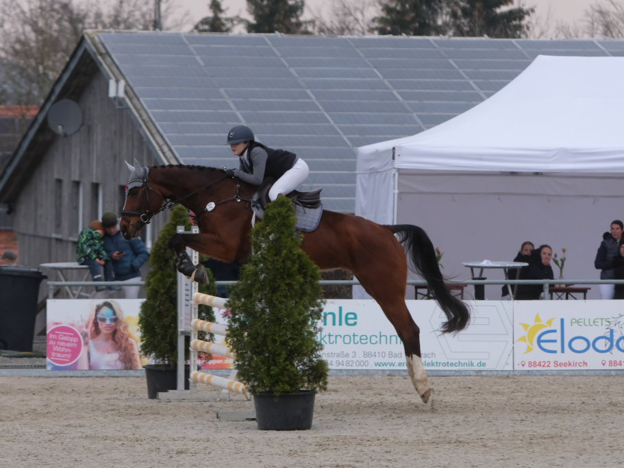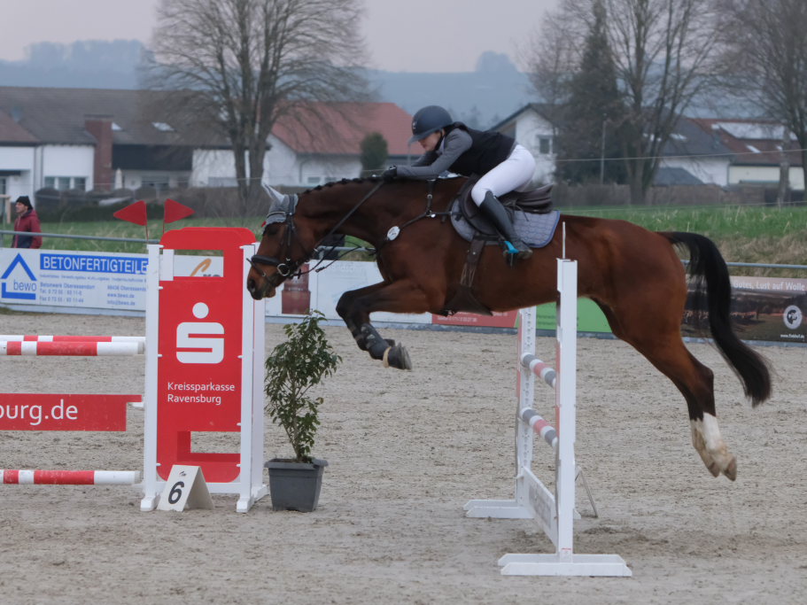 Bad Wurzach – Am Samstag 29. März eröffnete der RFV Bad Wurzach bei kühlem Vorfrühlingswetter die diesjährige Turnier-Saison auf dem Turnierplatz. Dabei schnitten die Reiter von den Reitvereinen aus der Region Bad Wurzach, Hauerz. Bad Waldsee, Rot a.d. Rot, Kisslegg und Leutkirch-Diepoldshofen, speziell bei den letzten beiden Prüfungen der Amateur-Springprüfung A** (100cm) und der Springprüfung Kl. L, sehr erfolgreich ab.
