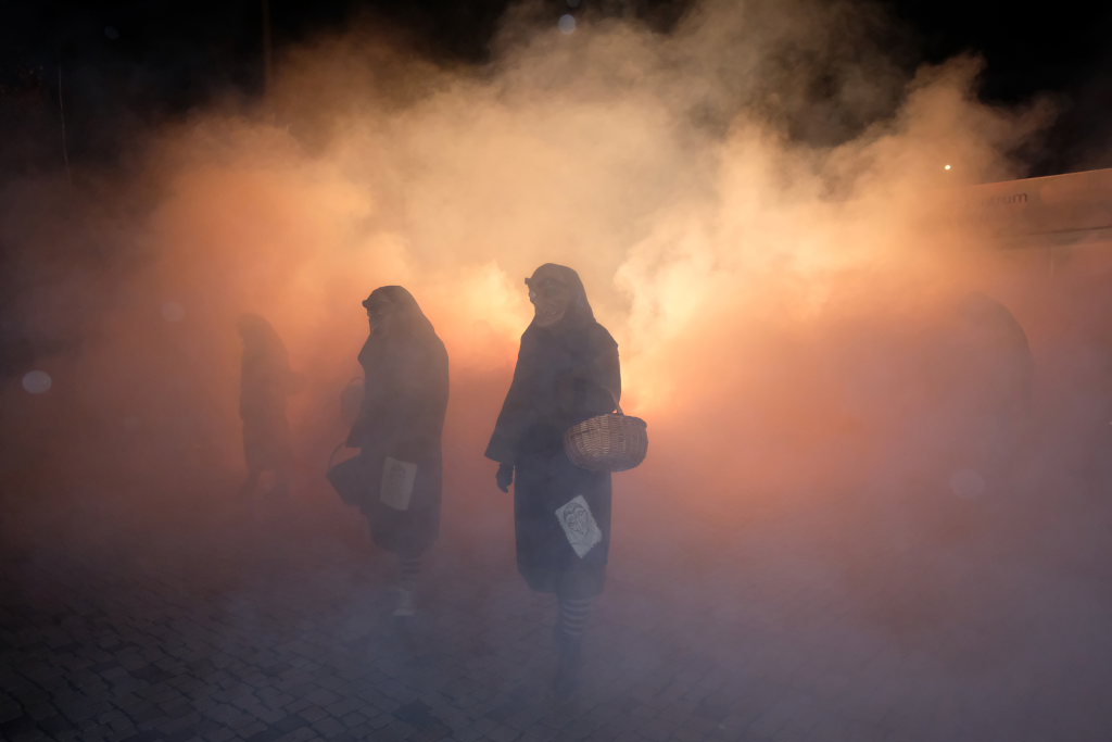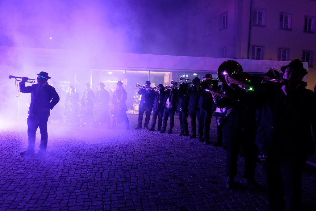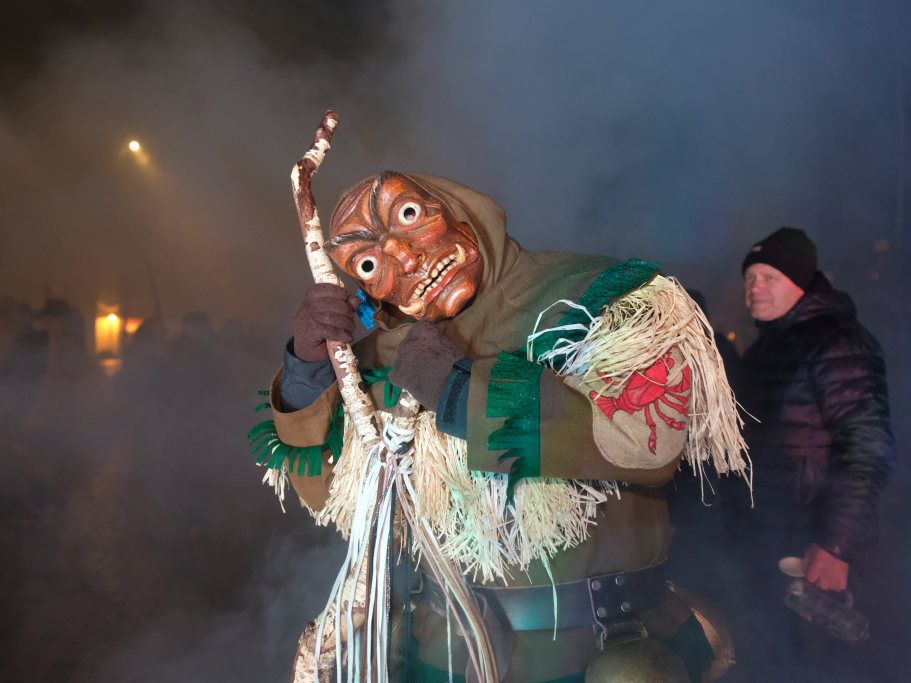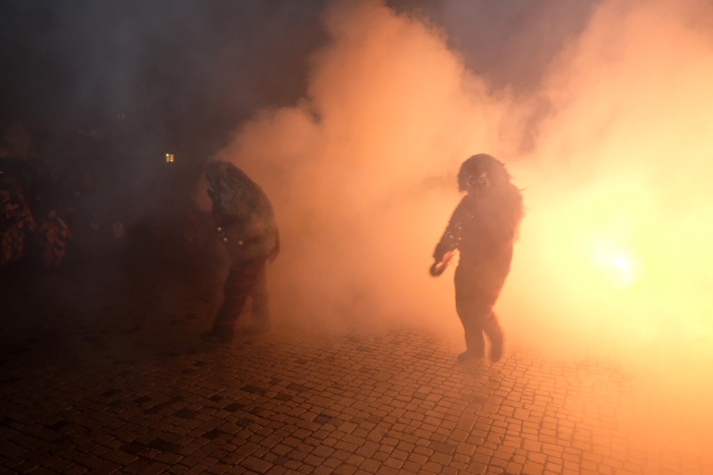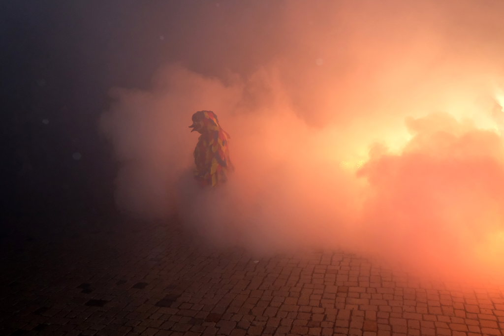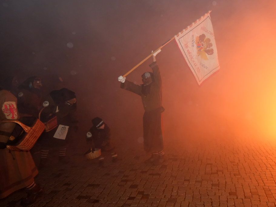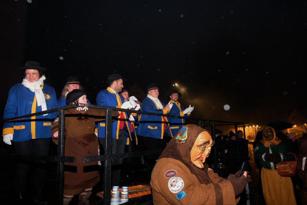 Den Abschluss machten dann die wilden Muetes, die an diesem Abend wohl dem Regen am besten trotzten, da sie die zahlenmäßig größte Gruppe bildeten. Bei einigen fetzigen Musikstücken des Fanfarenzuges wurde das Gschell von Riedmeckeler und Muetes aber doch noch „entstaubt“ und die Hästräger brachten sich damit für die neue Fasnetssaison in Stimmung, die dieses Mal am 5. März mit der Aschermittwoch-Geldbeutelwäsche und dem letzten Arbeitseinsatz enden wird.