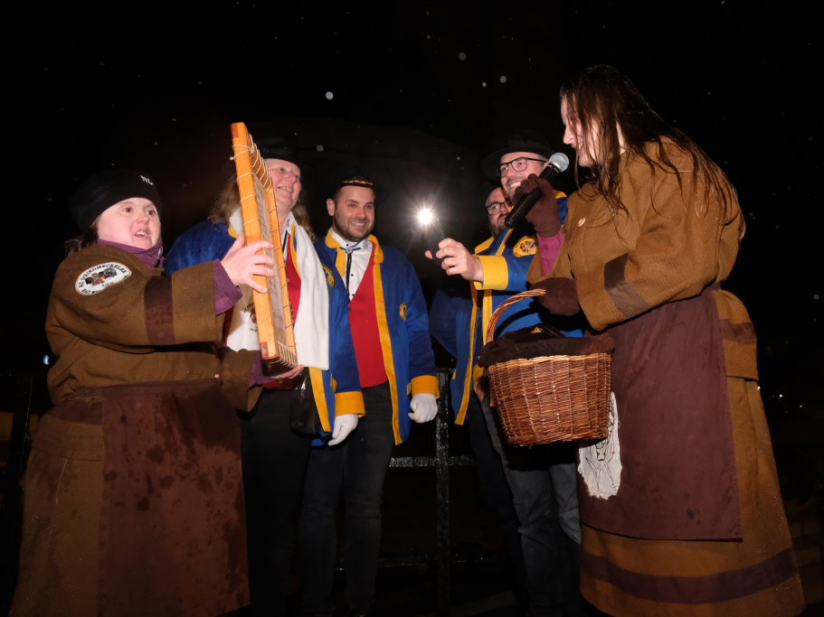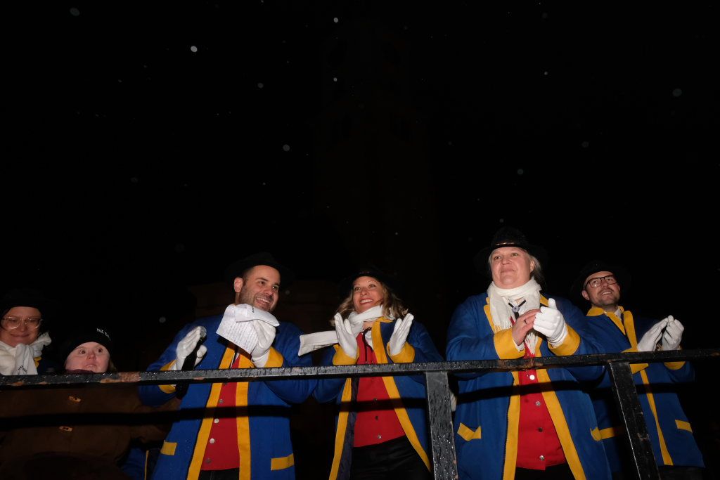 Die Glockenschläge von Hells Bells waren danach der traditionelle Startschuss für die Fasnetseröffnung der Bad Wurzacher Narrenzunft D´Riedmeckeler, die in diesem Jahr schließlich in einem ziemlich nassen Rahmen ablief. Zunftmeister Dominik Neher war also gemeinsam mit seinem Elferrat gefordert, das Spektakel rasch über die Bühne zu bringen, zumal sich auch Bürgermeisterin Alexandra Scherer zu den zahlreichen, rasch durchnässten, Zuschauern dazu gesellte.