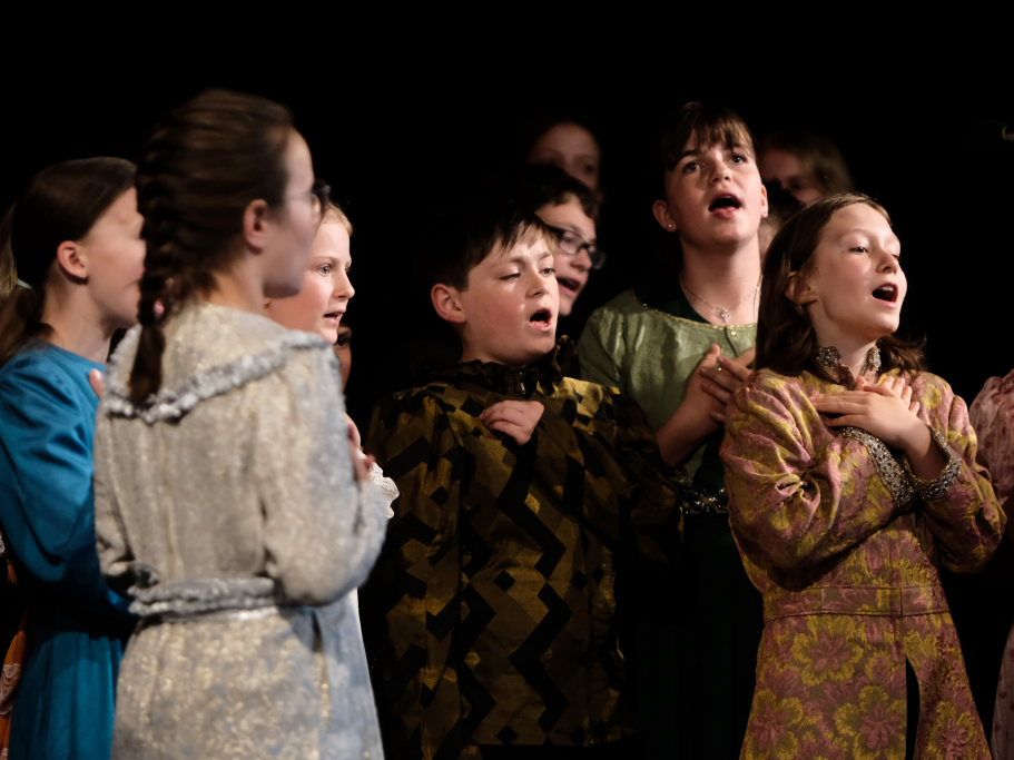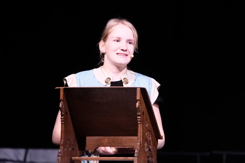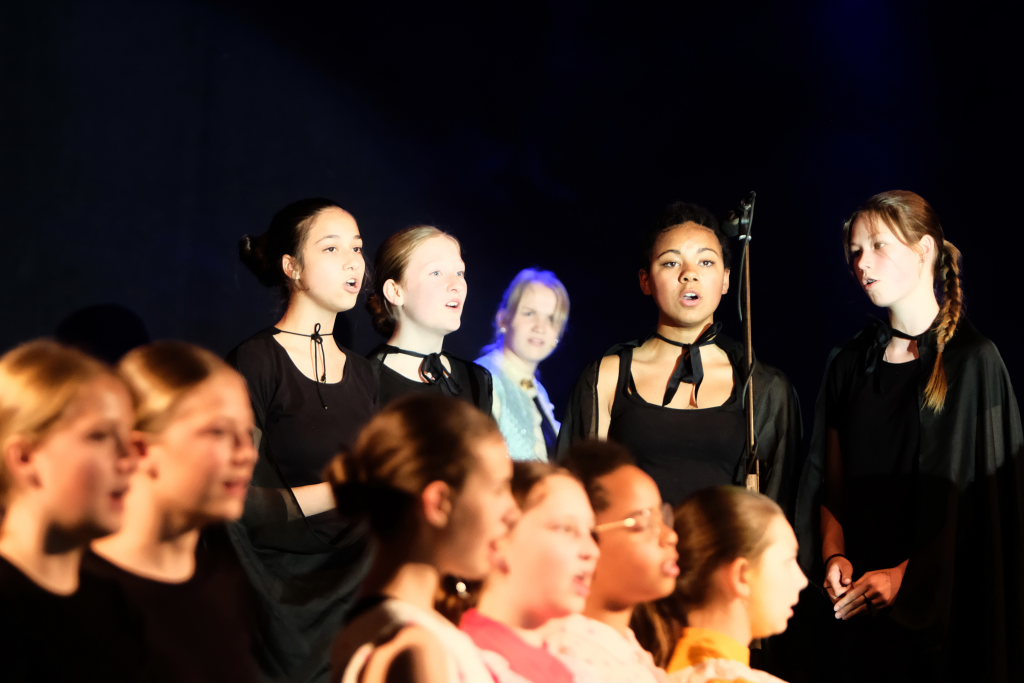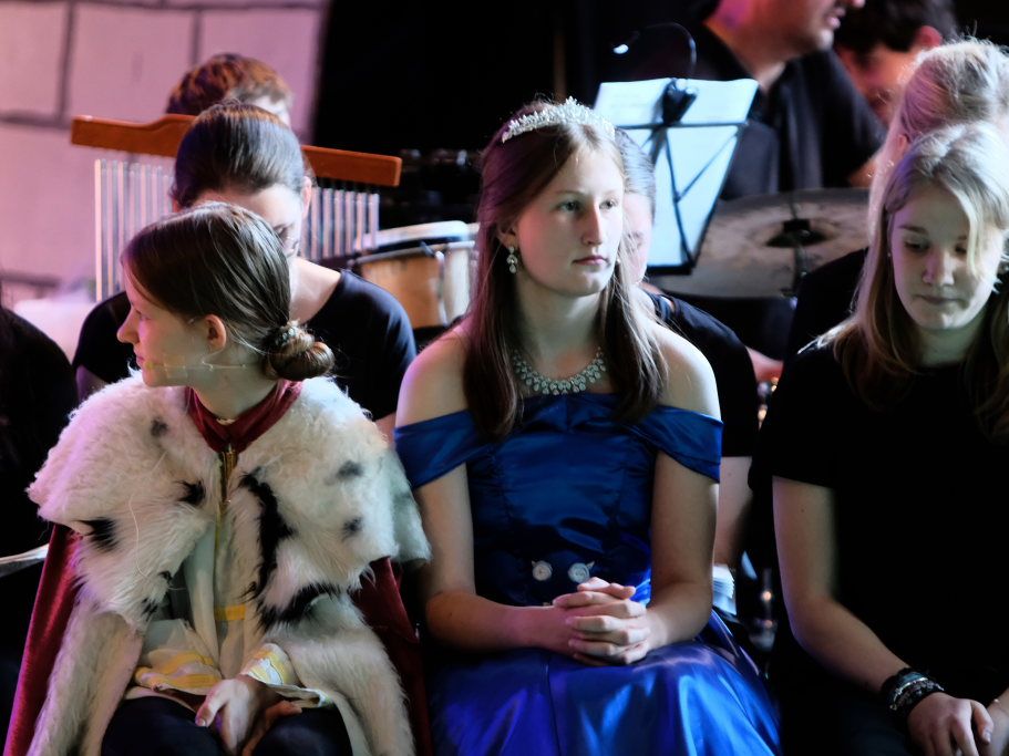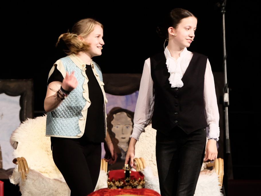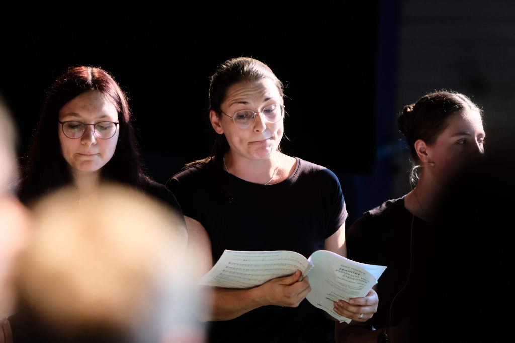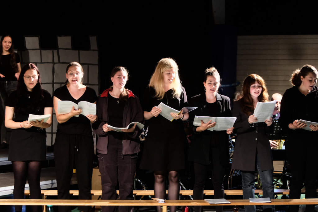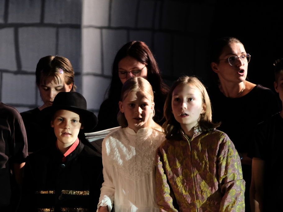 Christine Braig und Katharina Frommhold haben dies bei diesem Musiktheater eins zu eins umgesetzt und haben darüber hinaus so gut wie alle wichtigen Rollen doppelt besetzt. Und zwar nicht nur als Backup, sondern beide Besetzungen spielten ihre Hauptrollen bei den vier Aufführungen abwechselnd. 80 Protagonisten standen an diesen vier Tagen auf der Bühne. Arbeitslos waren die jeweils anderen Besetzungen jedoch nicht: Sie sangen im Chor bei den unter der musikalischen Gesamtleitung von Christine Braig stehenden Aufführungen mit.