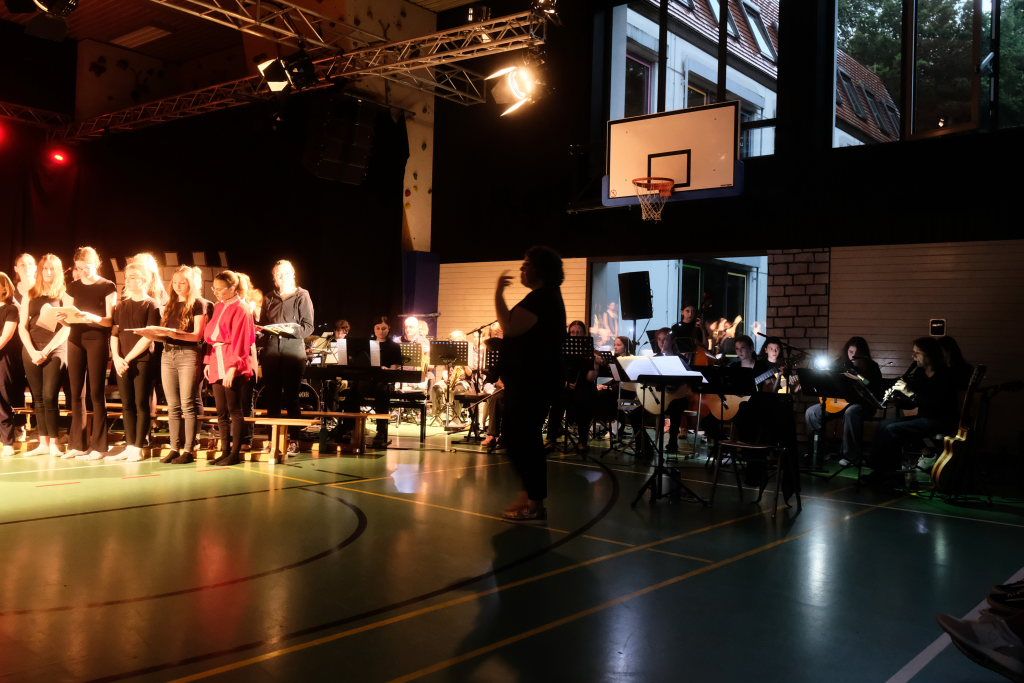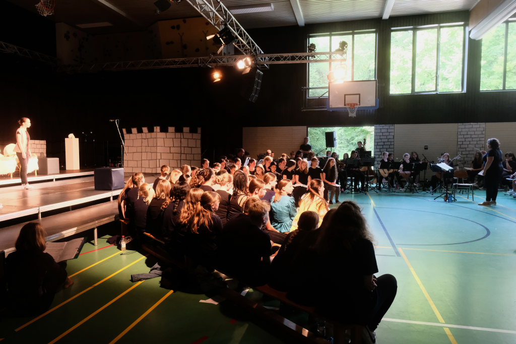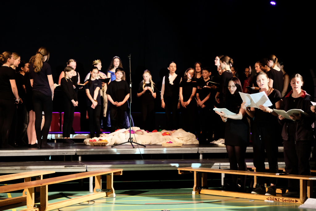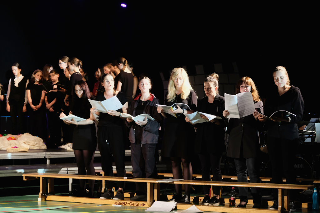 Die ersten Vorbereitungen für dieses Mammutunternehmen datieren bereits ins Jahr 2022. In Arbeitsgruppen wurden die Rollenverteilungen ausgearbeitet, was auch nicht ganz problemlos war, wie Schulleiter Klaus Amann erklärt: Weil viele der Schüler „Fahrschüler“ sind, blieb dafür oft nur die 6. Stunde. Auch das Thema Kontinuität etwa für den Chor war angesichts der vielen jungen Sängerinnen und Sänger der Klassen 5 bis 7 als nicht ganz einfach.