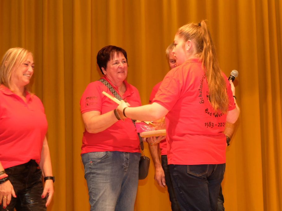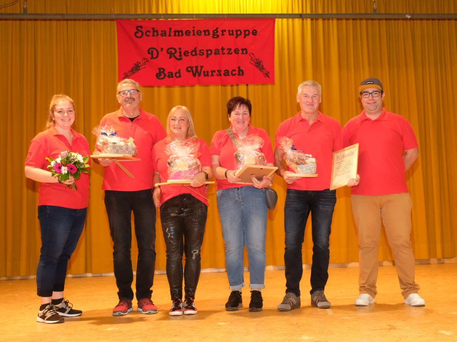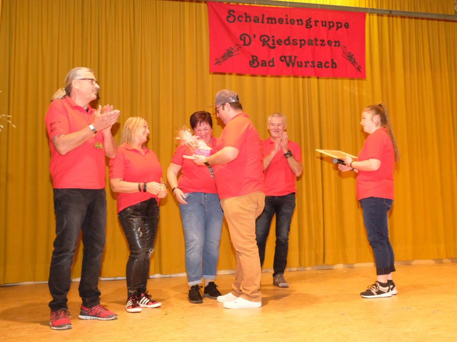 Diese kam selbstverständlich nicht mit leeren Händen, für das Jubiläum gab es für die Schalmeien noch eine entsprechende Jubiläumsgabe. „Seit nunmehr 40 Jahren begeistern Sie ihr Publikum mit Oldies, Schlagern, Volksmusik und aktuellen Hits.“ Mit der Namensgebung „Riedspatzen“ hätten sie den Bezug zur Riedstadt Bad Wurzach deutlich gemacht. „Heute sind die Schalmeien ein wichtiger Teil in unserer Vereinslandschaft, in der Fasnet und am Stadtfest engagiert und dort nicht wegzudenken.“