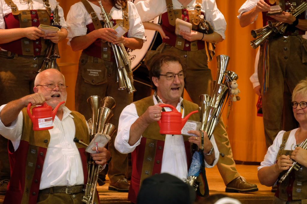 Ralf und Tamara Hofmeister, die gemeinsam mit Reinhold Haller seit 2015 das aktuelle Vorstandsteam bilden, skizzierten bei Kaffee und Kuchen noch einmal in aller Kürze die Aktivitäten der Gruppe während dieser vier Jahrzehnte, in denen die Musiker weit herumkamen. Bis heute halten sie seit 1989 dem Weinfest in Bernkastel-Kues die Treue, dessen Organisatoren selbstverständlich zu dieser Feier eingeladen waren.