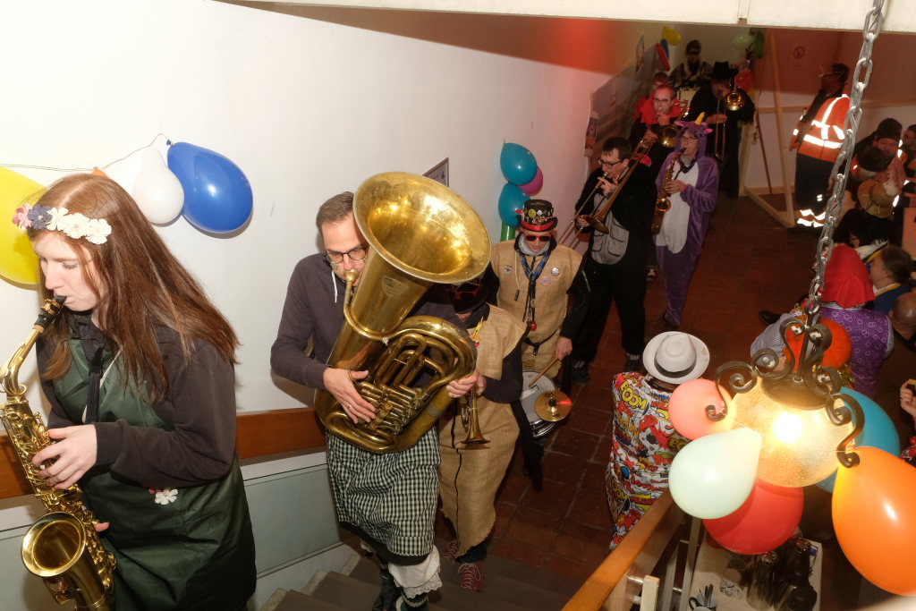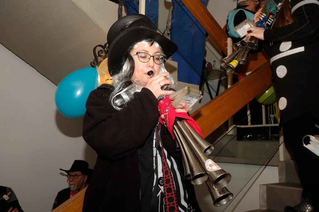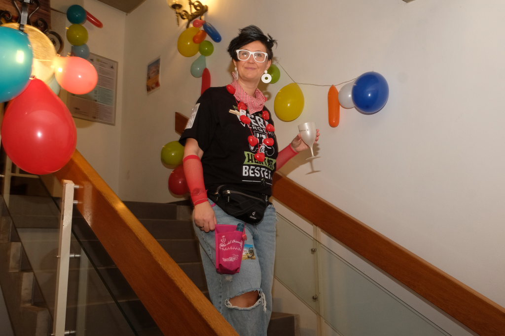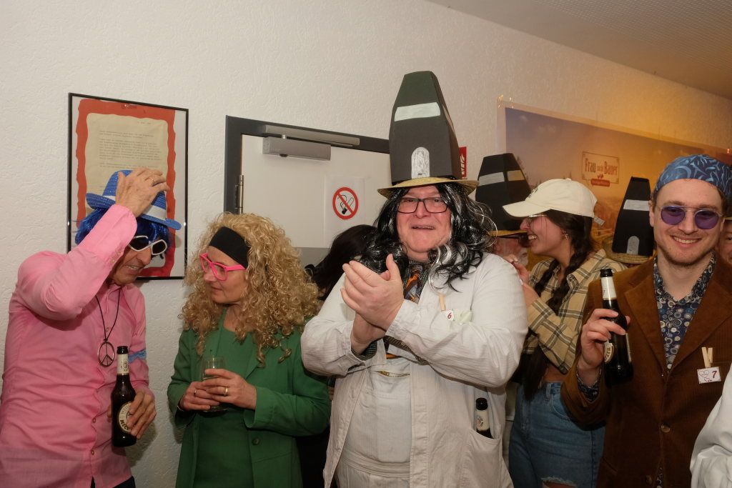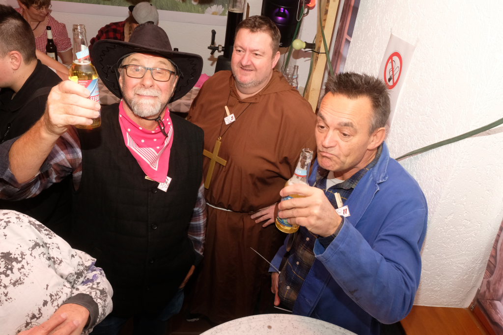 Es wurde gekuppelt, was das Zeug hielt: Maria, die städtische Politesse, erhielt Edgar, den Herrn des Breitbandes zugelost. Ein Herr der Bauparagrafen (Gerhard S.) schenkte Inkas Brause aus, für die man schon Einiges gewohnt sein musste. Hausherrin Kathleen die Erste, die per Dienstanweisung der Bürgermeisterin die närrische Tradition ihrer Vorgänger weiterführen darf, zeigte sich im eleganten hellblauen Dirndl den Dating-Willigen. Während in den Räumen der ehemaligen Galerie im Amtshaus Getränke mal mit, mal ohne Geist ausgeschenkt wurden, denen auch der in einer Mönchskutte steckende Stadtheilige fleißig zusprach. Die Gattin des obersten Personalers der Stadt habe ihn mal als (schein-)heilig bezeichnet, weswegen er nun in sich gehen wollte.