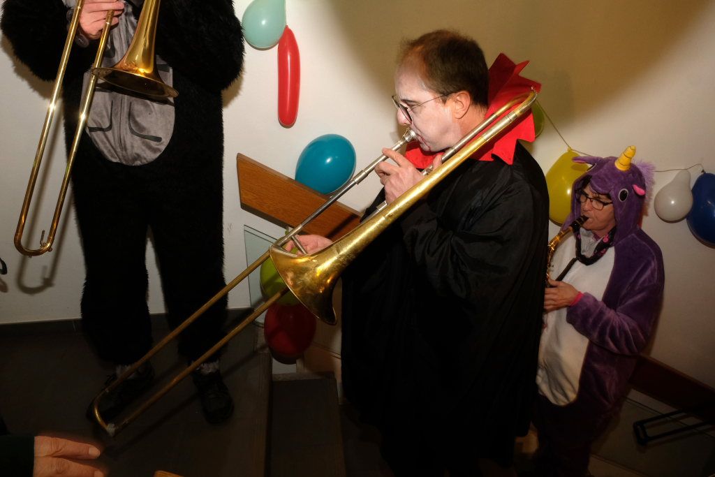 Was wäre so ein Hüttenzauber ohne Musik: Nachdem zuerst die Lumpenkapelle der Stadtkapelle, begeistert beklatscht von PS, ihrer Dirigentin bei den Konzerten, das Treppenhaus im Amtshaus zum Vibrieren gebracht hatte, sorgten die Riedspatzen-Schalmeien ebenfalls für richtig gute „Scheunenfest-Stimmung“.