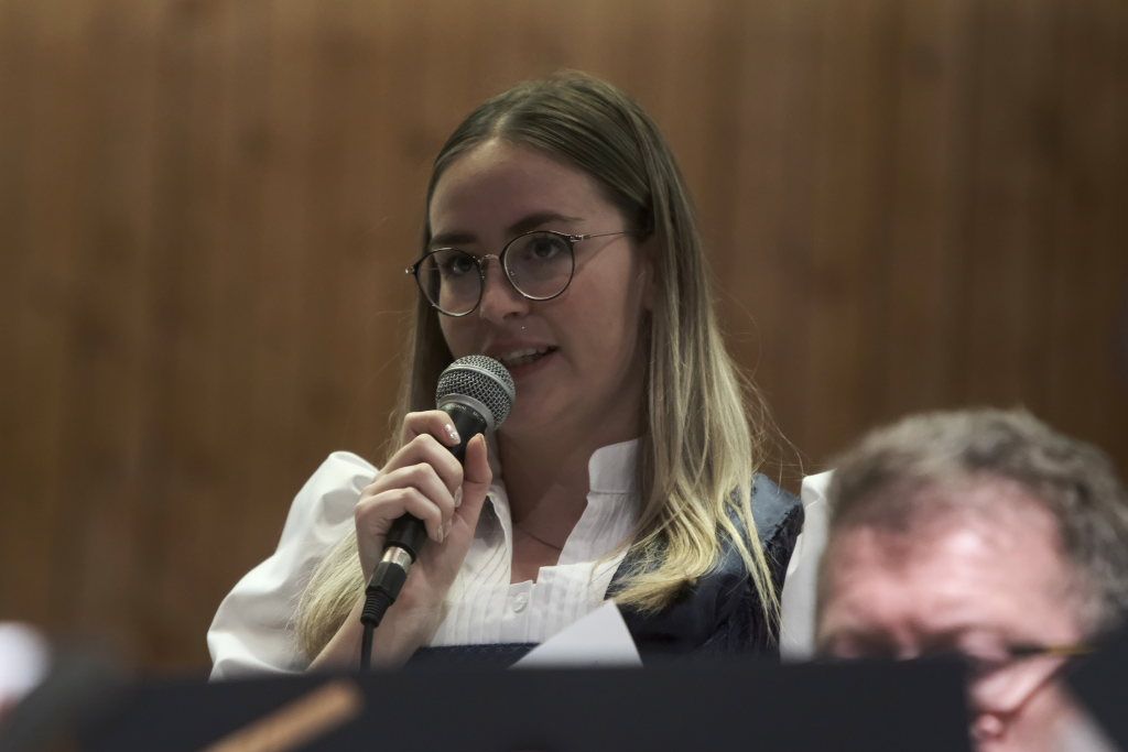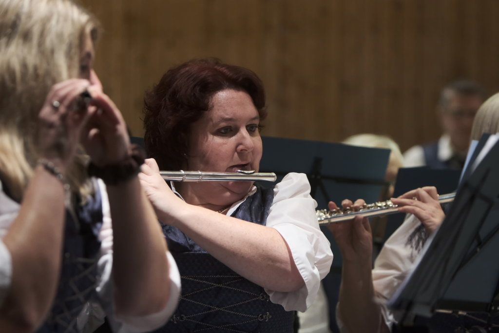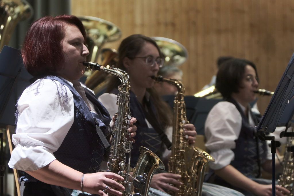 Weiter ging es mit „Elisabeth – The Musical“, von Michael Kunze und Sylvester Levay komponiert und von Johan de Meij für Blasorchester arrangiert. Bereits als Kind habe sie die Sissi-Filme mit Romy Schneider, die alljährlich im Fernsehen laufen, geliebt, sagte Theresa Hierlemann. Das Musical beginne zwar auch als romantische Geschichte, „aber eigentlich isch es halt an Totentanz.“ Das Musical erzählt die wahre Geschichte von Elisabeth, der berühmtesten Kaiserin von Österreich. Ihr Leben am Wiener Hof begann wie ein romantisches Märchen, entwickelte sich jedoch schnell zu einem Drama voller Entbehrungen und Machtkämpfe. „Elisabeth“ ist die Geschichte einer starken und modernen Frau, die sich von allen Zwängen befreit und dafür einen hohen Preis zahlen muss. Der „Tod“, dargestellt durch einen mysteriösen, attraktiven Mann, begleitet sie stets.