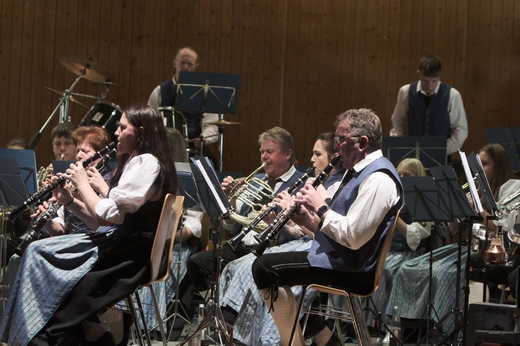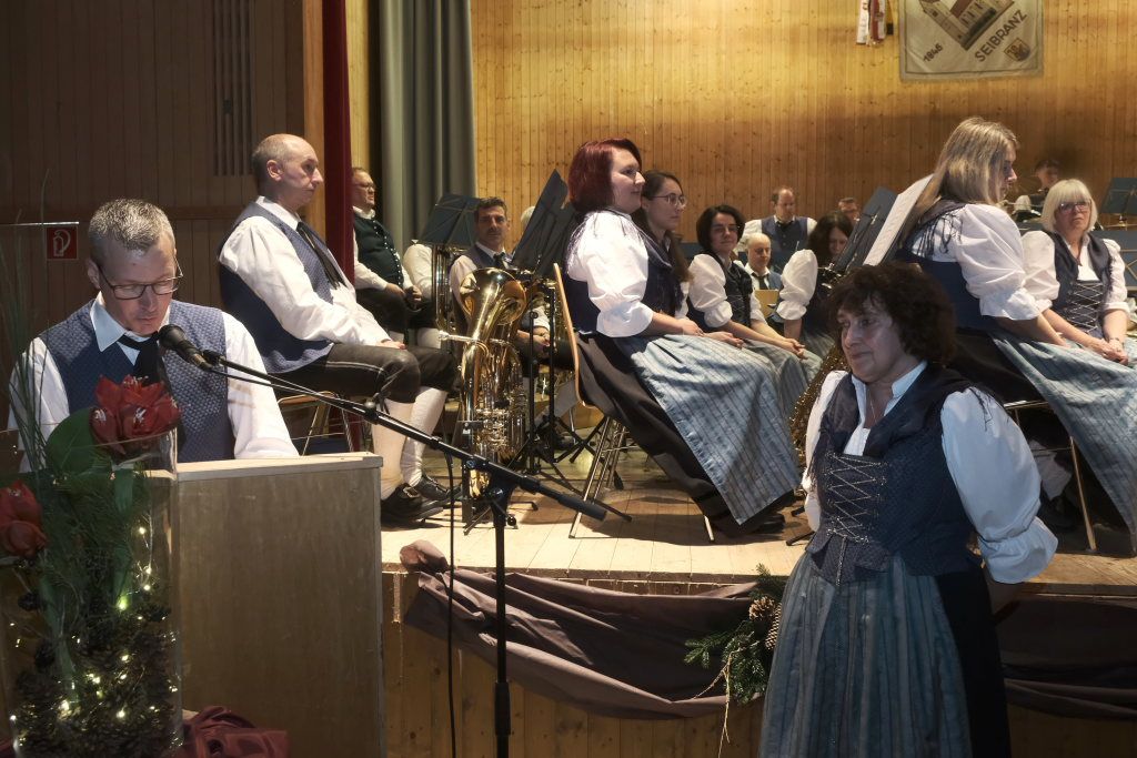 Seibranz – Für das (für die Seibranzer hoffentlich letzte) Konzert in der „alten“ Halle hatte Dirigent Erich Minsch wieder ein abwechslungsreiches und die Musiker forderndes Programm zusammengestellt und einstudiert. Charmant und kreativ wie immer führte Theresa Hierlemann auf Schwäbisch durch das Programm des Neujahrskonzerts.