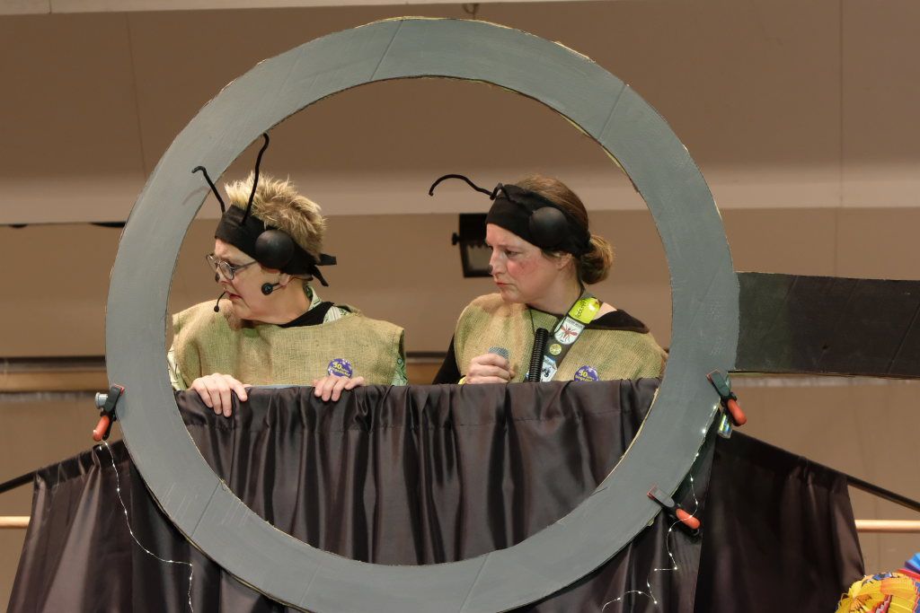 Claudia Forderer und Anja Vincon hatten als Schnaken Logenplätze bei der Beobachtung des Stadtgeschehens und dem letzten Aufbau des Festes, das nach ihnen benannt wurde. Brigitte Hoffmann, Barbara Schwarz und Felicitas Vincon mühten sich redlich mit den Vorbereitungen für das Fest, dem dann Nicole Müller als städtische Vollzugsbeamtin den Garaus machte.