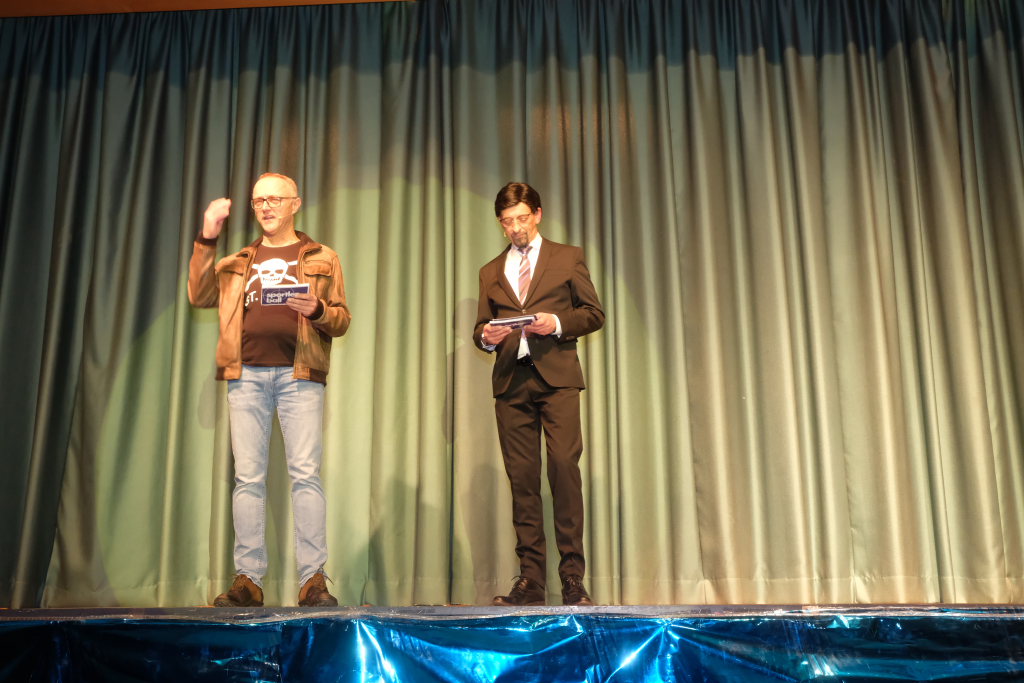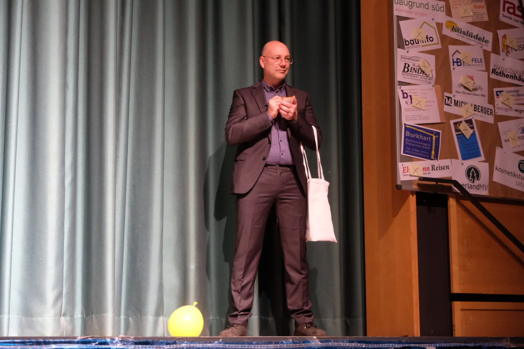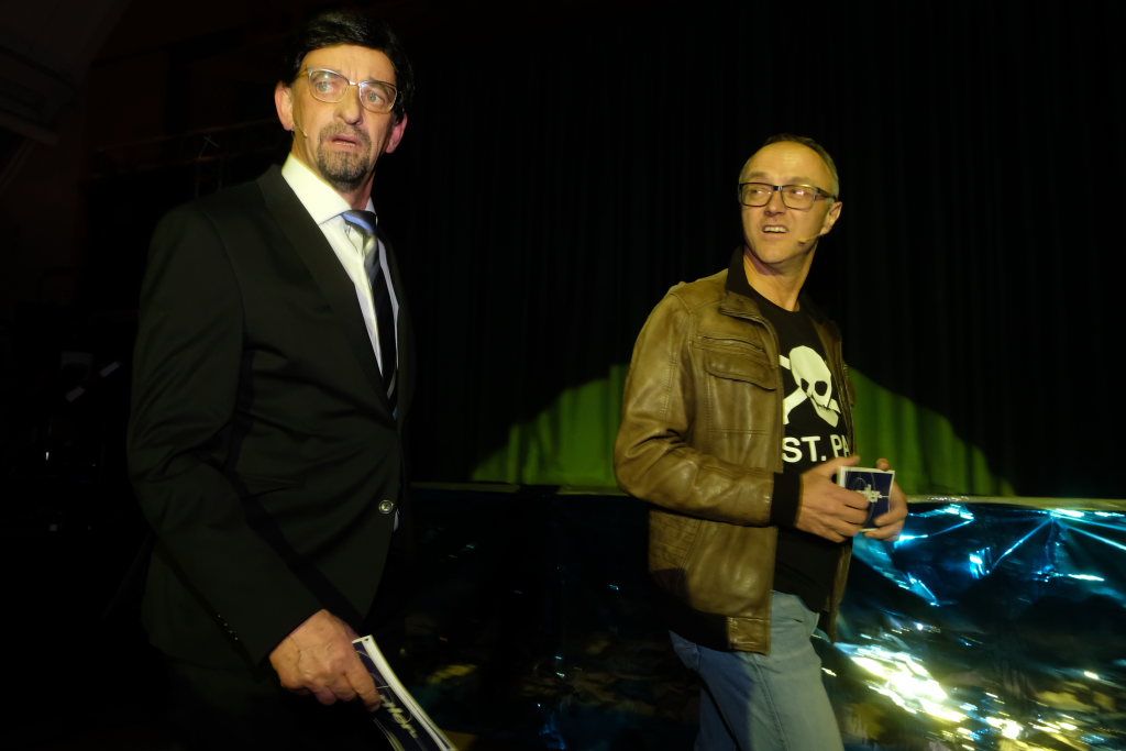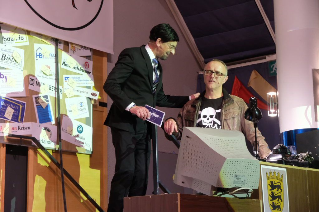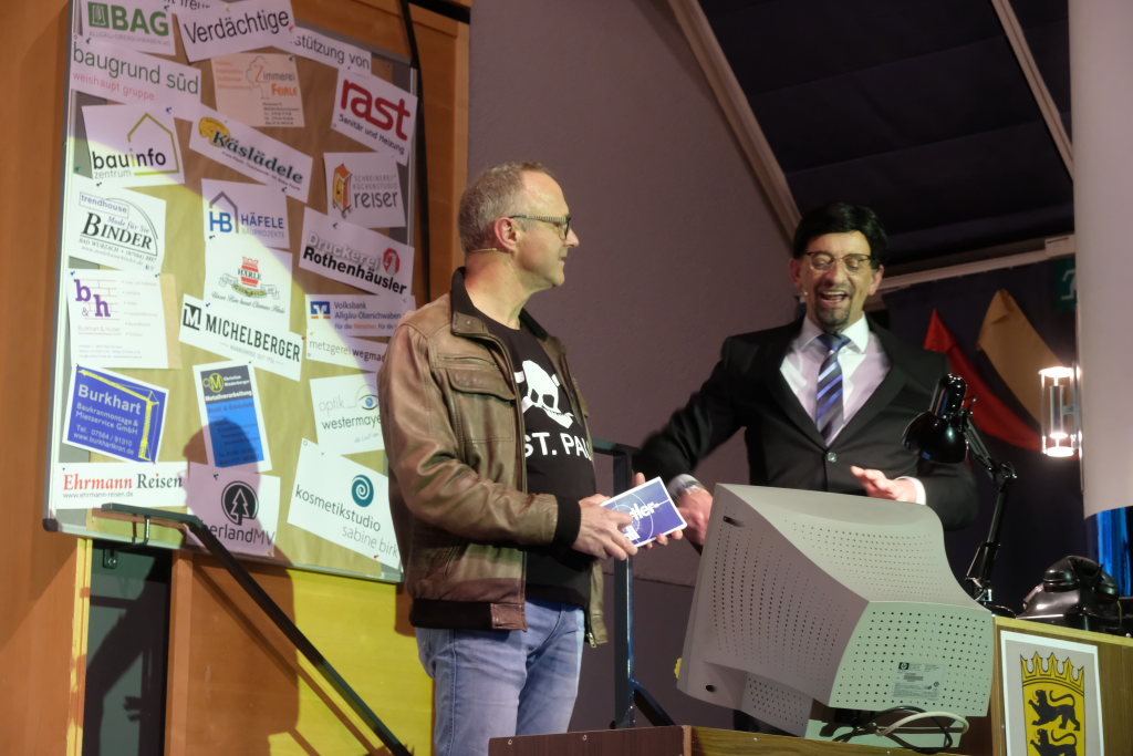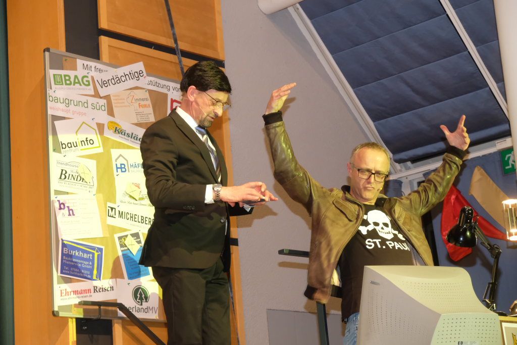 Einer dieser Männer, nämlich Hubert Forderer, zeigte gemeinsam mit Alexander Strobel auch in diesem Jahr wieder sein großes komödiantisches und artistisches Potential. Wie sagte doch Hardy Thiel: „Der Fall des verschwundenen Krebses ist wie verhext. Wia wenn oiner d’r Krebs wegzauberet hett.“ Denn genau das taten Hubi und Alex: Sie vollführten wunderbar-witzige Zauberkunstücke, da blieb kein Auge trocken.
