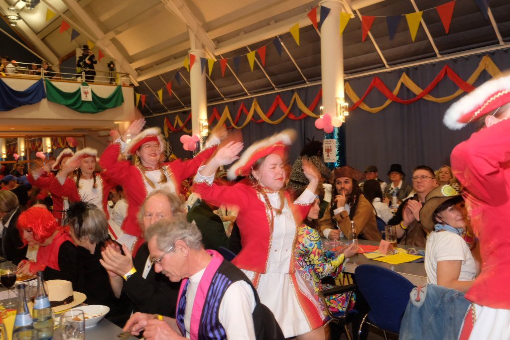 Wer genau hinsah, konnte bei einem der Tänzer der Turnergarde – lauter stattliche junge Männer im heiratsfähigen Alter – unter seinem Röckchen das Abbild eines Krebses entdecken.