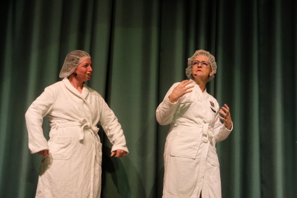 Claudia Forderer und Anja Vincon philosophierten im Spa einer Schönheitsklinik über Wespentaillen, Spe(c)ktrumserweiterungen, die Erotik des Alters – und natürlich ihre Männer: „Wie erkläre ich ihm, dass Buddha keine griechische Gottheit ist?“