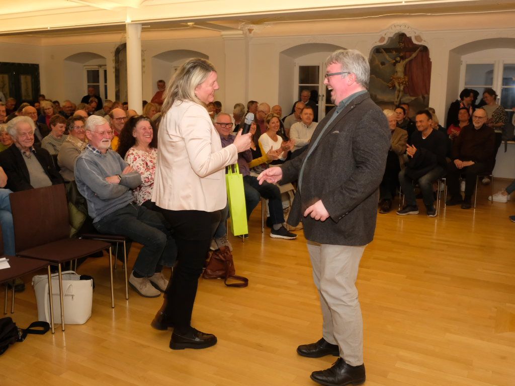 Wild wies am Ende seines Vortrages, für den er donnernden Applaus erntete, darauf hin, dass der Bauernjörg auf Betreiben seiner Mutter Erbauer des Klosters Maria Rosengarten in Wurzach ist. Seine Mutter war die erste Äbtissin des Klosters, das heißt, er war in eben diesen Räumen in jener Zeit öfters zugegen.