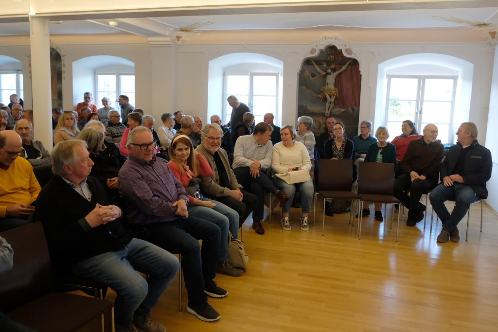 Rasch wurde klar, dass den Vortrag mehr Menschen hören wollten als erwartet. Weitere Stühle wurden aufgestellt. Dies und vieles in der Vorbereitung des Projektes „Jubiläum 500 Jahre Bauernkrieg“ übernahmen die Damen der Bad Wurzach-Info gemeinsam mit Bürgermeisterin Alexandra Scherer und Martin Tapper vom Bürgermeisteramt. Deswegen erklärte Stadtarchivar Wild auch in seiner Begrüßung, dass er das Arbeitspensum in der Vorbereitung dieser Veranstaltungsreihe als Einzelkämpfer nicht geschafft hätte. Dafür bedankte er sich bei diesem Team und ließ sich angesichts der überwältigenden Resonanz auch nicht lange bitten: Der Vortrag wird von Wild im Mai an einem noch festzulegenden Termin noch einmal gehalten.