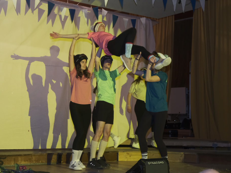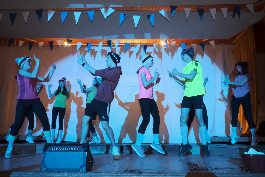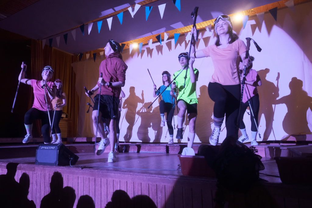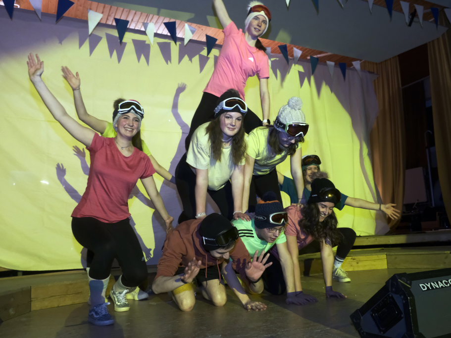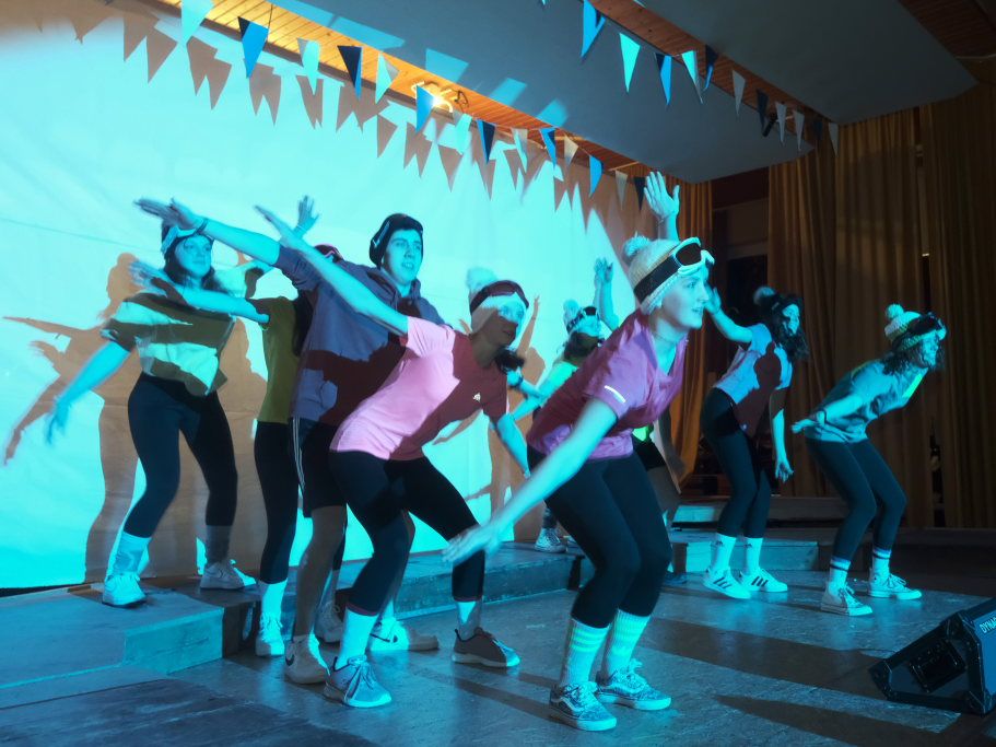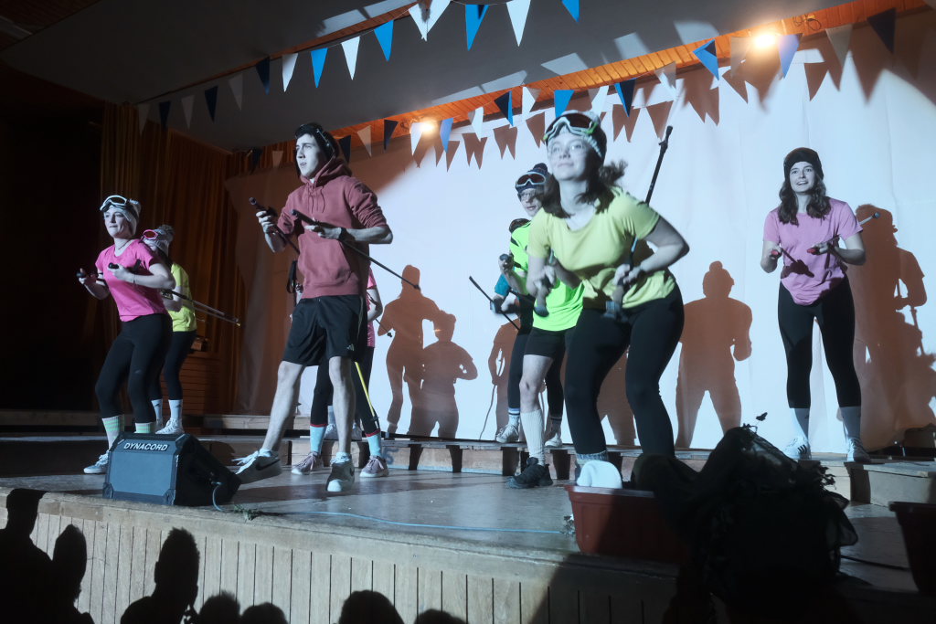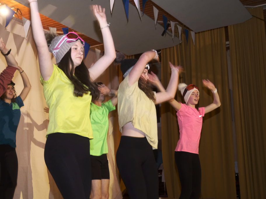 Die Jungmusikanten als tanzender Trockenskikurs