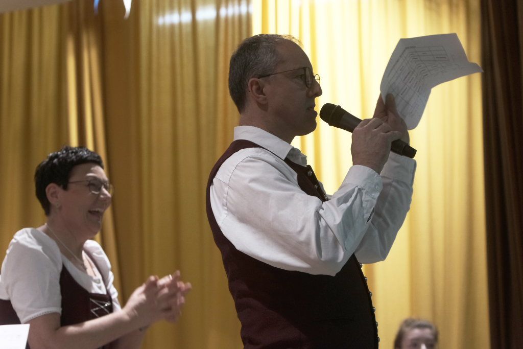 Oswin Butscher thematisierte bei seiner pfiffigen Ansage während der Umbauphase den Fachkräftemangel im Handwerk. Dem Sohn von Feuerwehrkommandant Rolf Butscher wurde gesagt, als die Berufswahl anstand: „Gang schdudiera, Du hosch eh zwoi linke Händ´.“