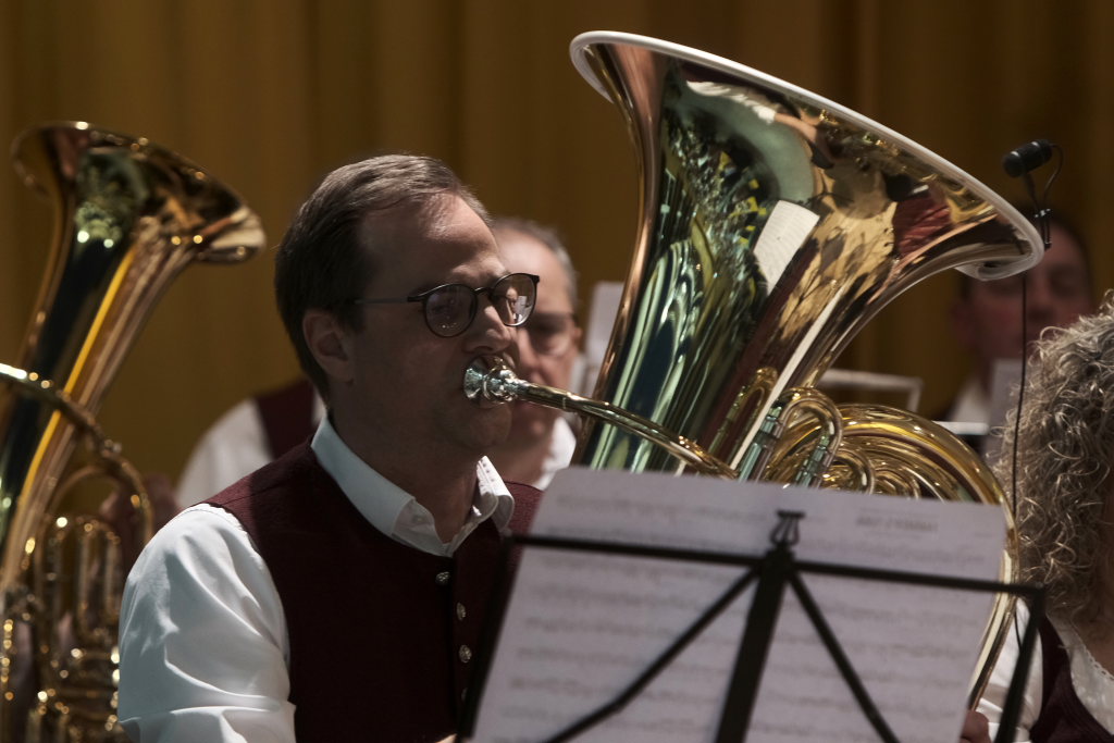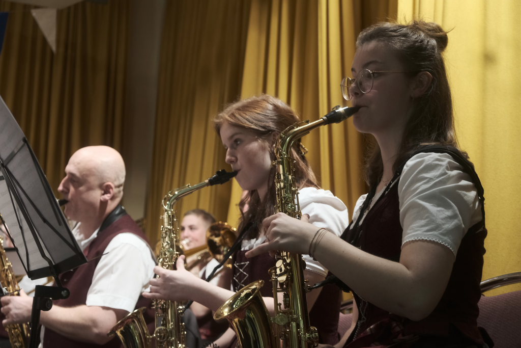 Wolfgang Grösser bedankte sich bei seinen zahlreichen Helfern in Küche und Service, teilweise aktive Musiker, teilweise auch Jungmusikanten, ebenso bei Freddy Holzmüller, der schon seit vielen Jahren die Bühnentechnik betreut.