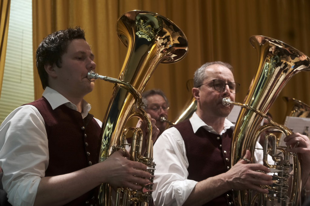 Dass die Jungs dieser exerzierplatzgeschulten Truppe musikalisch etwas drauf haben, zeigten sie nicht nur an ihren Musikinstrumenten, sondern auch beim auf Feuerwehrschläuchen geblasenen Triumphmarsch aus der Oper Aida.