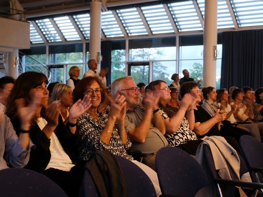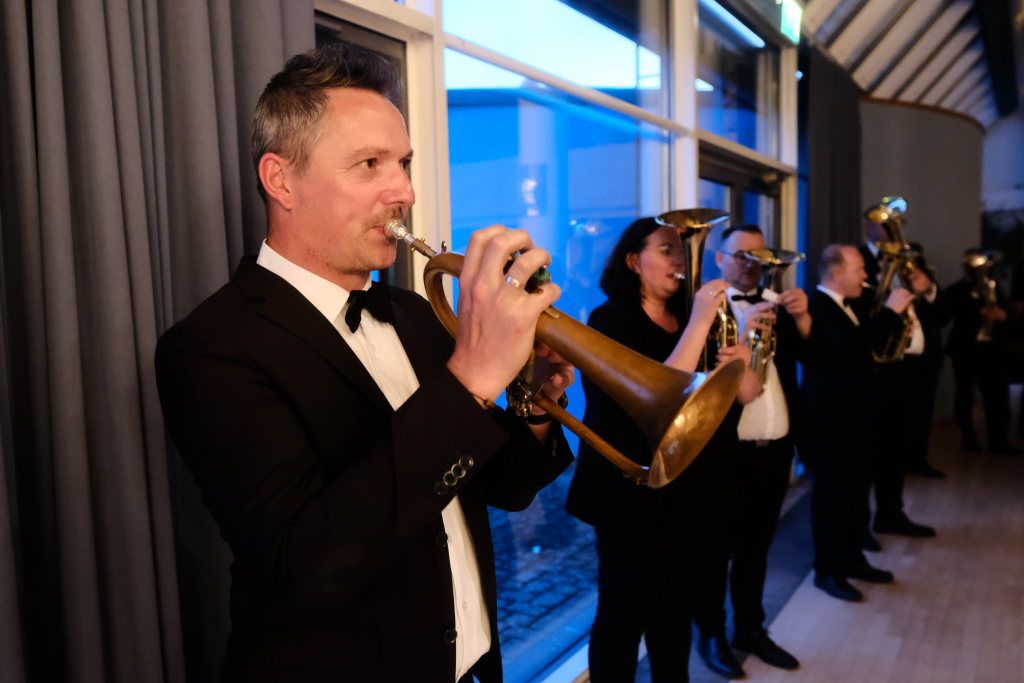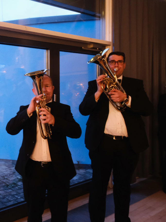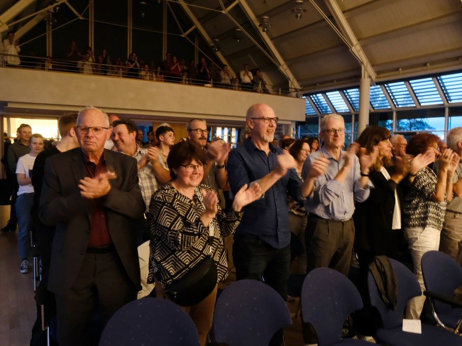 Deswegen war es auch kein Wunder, dass das Publikum danach vehement eine Zugabe forderte und sogar zwei bekam: Die Nordic Polska und Bourbon Street Brass´in, bei dem es das Publikum endgültig von den Sitzen riss, nachdem die Musiker sich dazu im Saal verteilt hatten und danach noch einmal vor der Bühne versammelten um die Huldigungen entgegen zu nehmen. Bernhard Reifer entschuldigte sich fast dafür, dass sie keine weitere Zugabe spielen konnten, was allerdings nach der Vorgeschichte des Konzertes verständlich war und der sehr guten Stimmung keinen Abbruch tat.