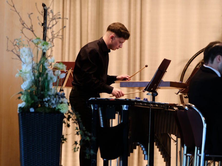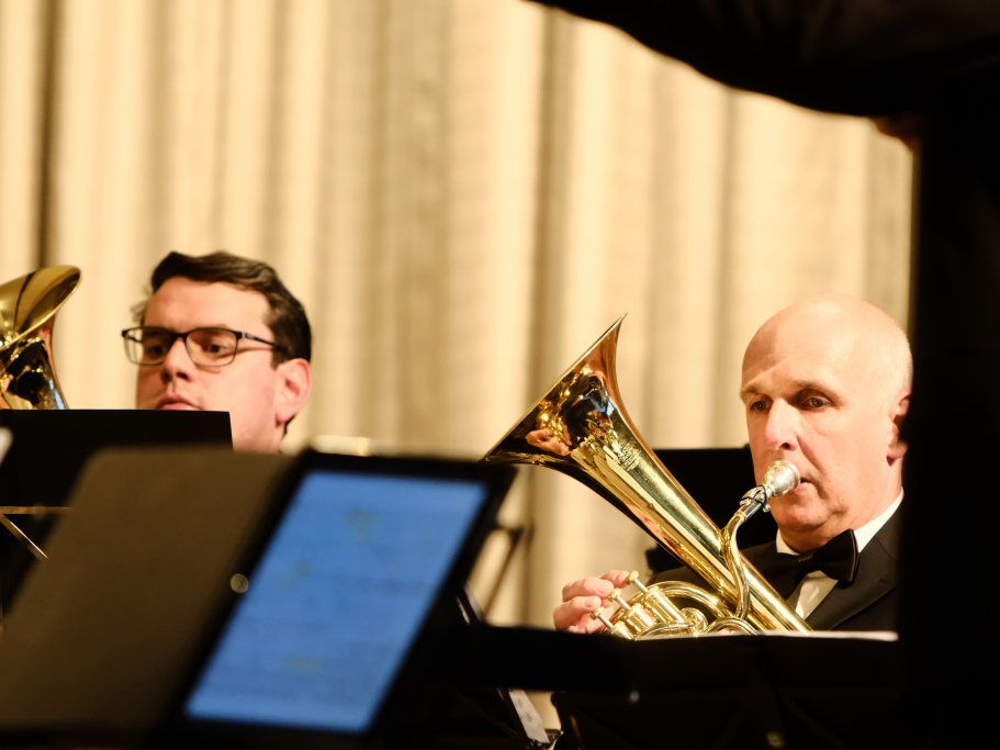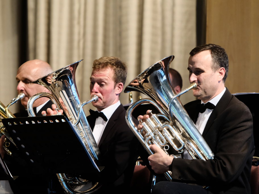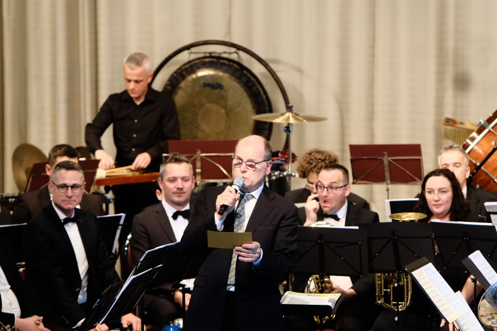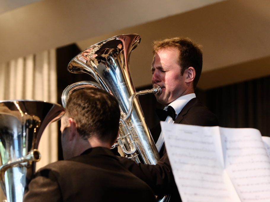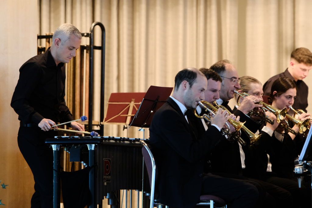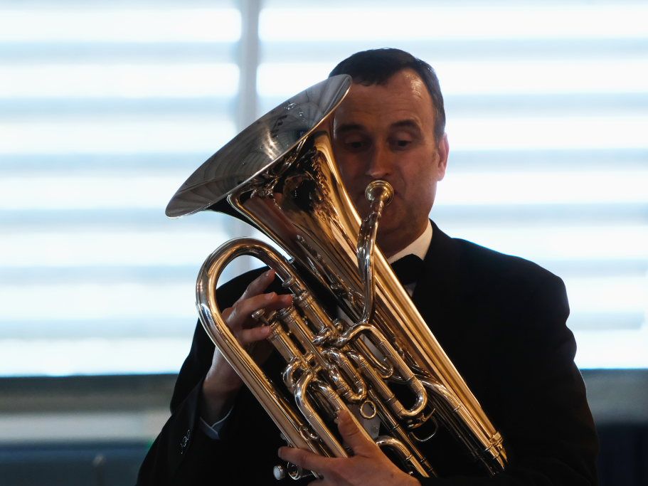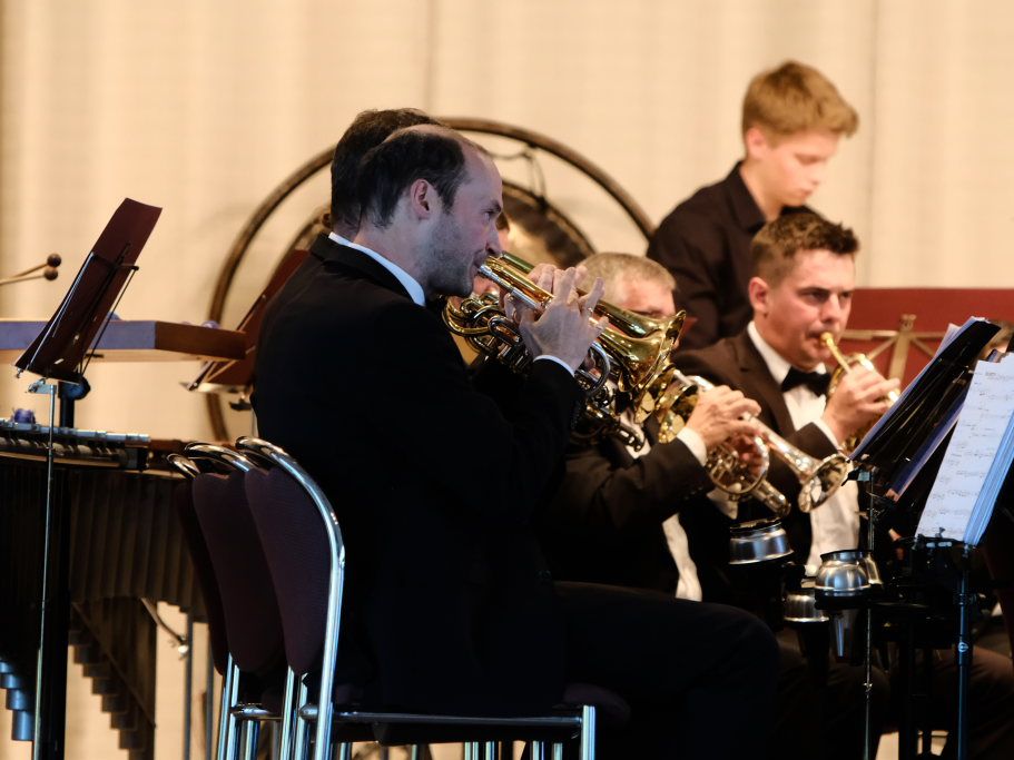 Mit dem Traditional „Carrick Fergus“ im Arrangement für Brass-Band von Stephen Roberts setzten die Musiker um Dirigent Bernhard Reifer, der auch die Ansage der einzelnen Stücke übernahm, das Konzert fort. Carrick Fergus ist eine Stadt in Nordirland – und der Name eines irischen Traditionals, bei dem sich Klaus Merk an einem der wichtigsten Instrumente für Brass-Bands, dem Euphonium, als Solist auszeichnen konnte.