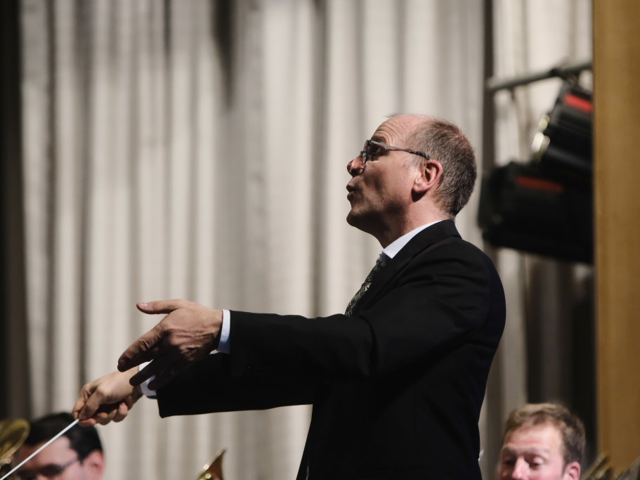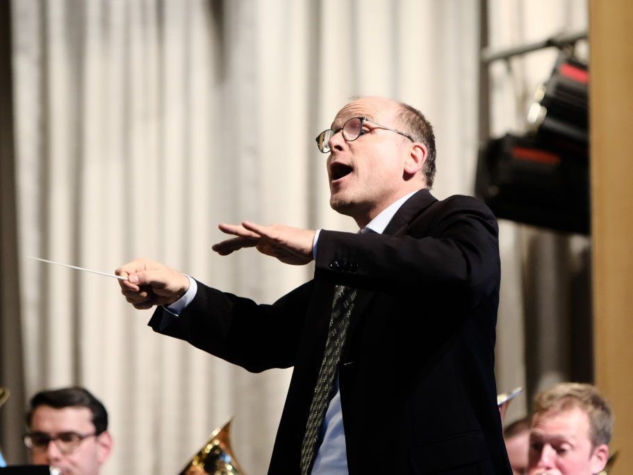 Reifer zeigte dann auch bei „Excalibur“ jenem fesselnden Stück Musik von Jan van der Roost über das sagenumwobene Schwert, das König Artus zum König machte, vollen Körpereinsatz. Eine gute Kondition war auch von den Musikern gefordert, dauert das Monumentalwerk doch eine gute Viertelstunde.