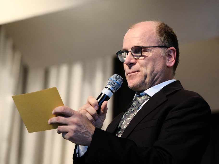 Und noch einmal Stjin Aertgeets: „Hope“ Hoffnung soll uns in unruhigen Zeiten daran erinnern, niemals aufzugeben, wie der Komponist selbst in einem Text schreibt, den Bernhard Reifer vortrug.