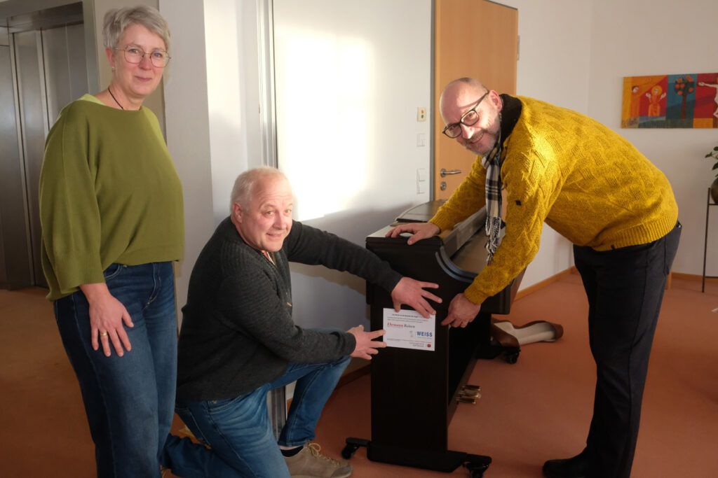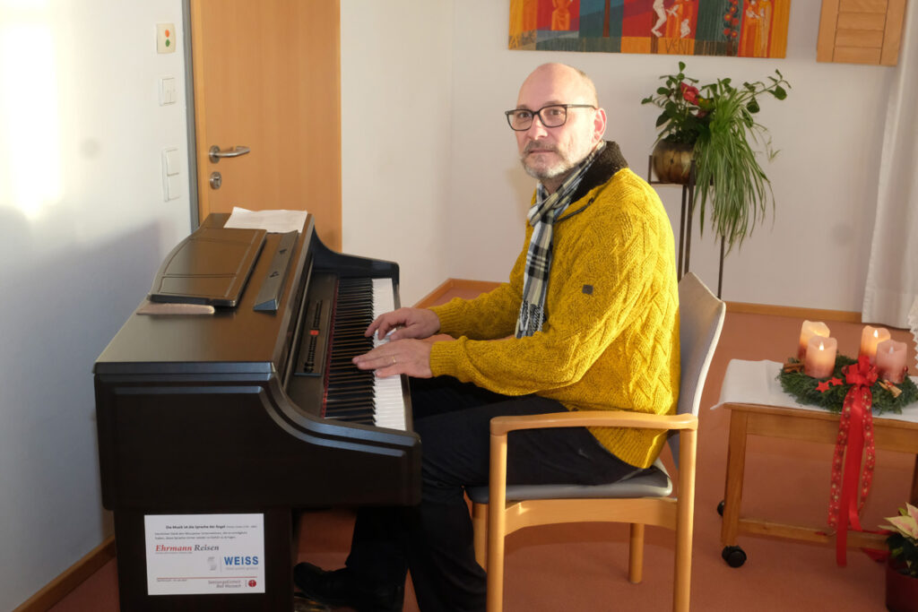 Bad Wurzach – Auf Initiative von Pastoralreferent Matthias Winstel erhielt das Seniorenheim (nicht nur) für seinen Gottesdienstraum ein E-Piano, gestiftet von Metallbau Weiss aus Unterschwarzach und Ehrmann Reisen in Bad Wurzach.